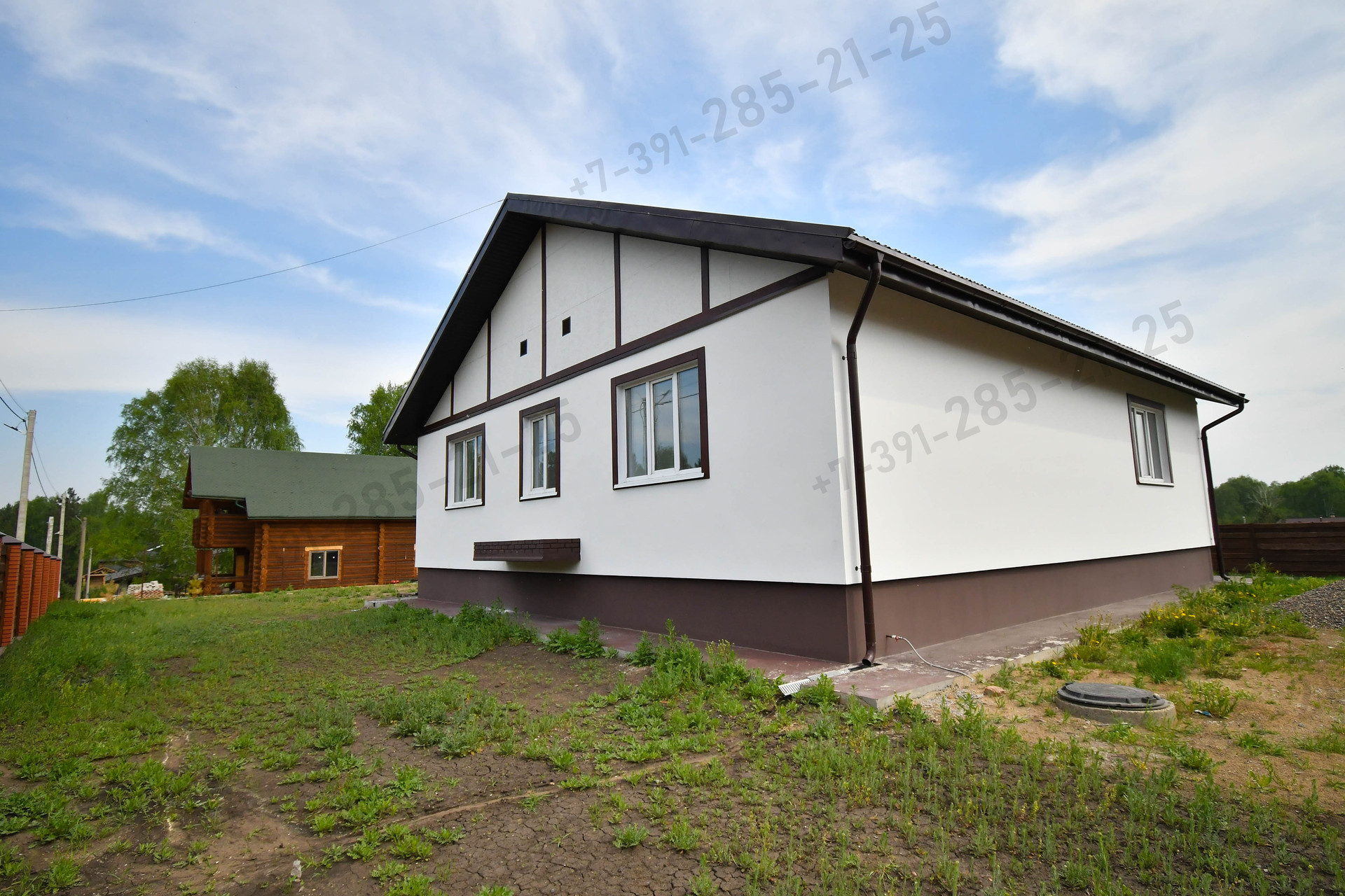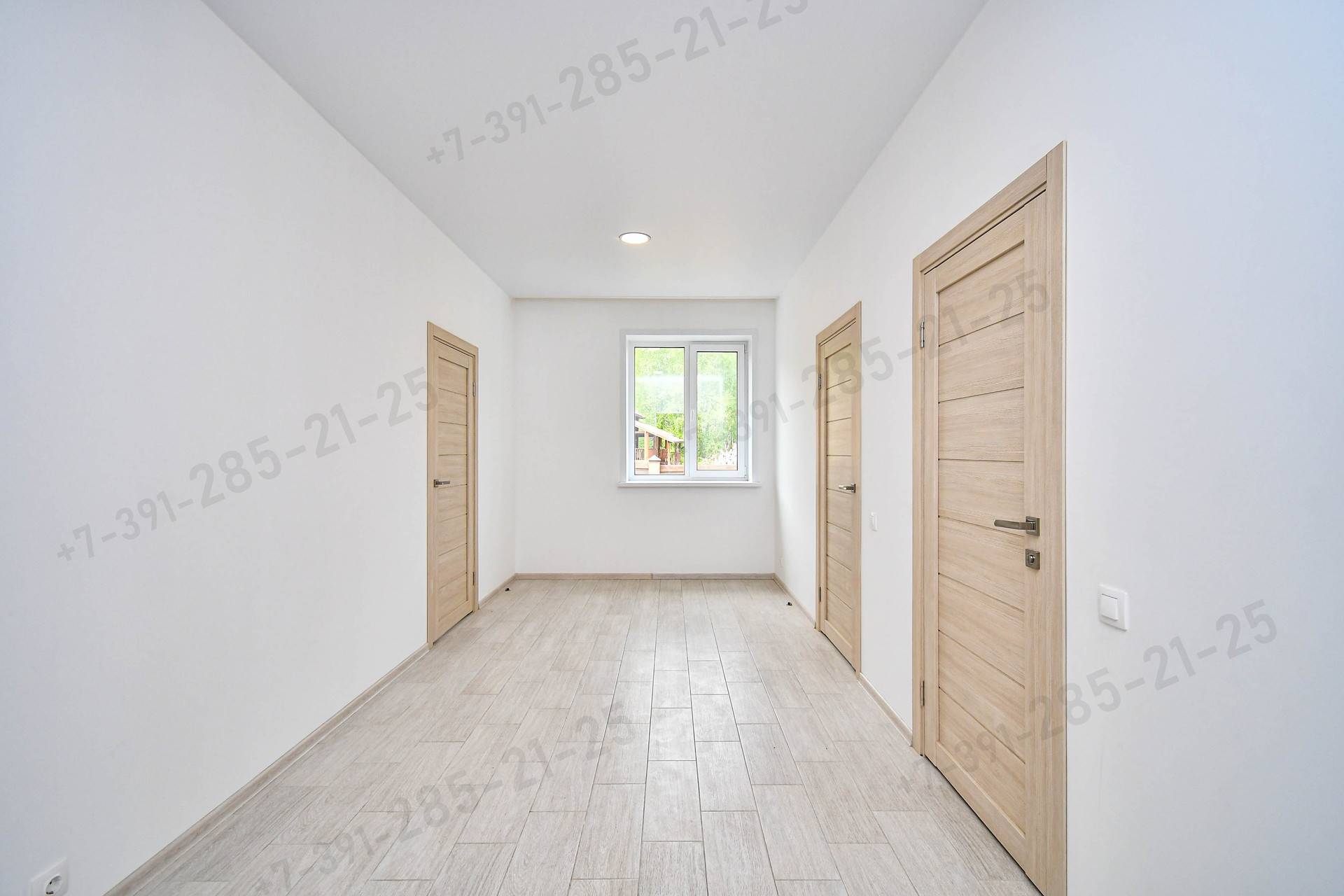 Дом полностью готов к комфортному проживанию, все отделочные работы были завершены в конце 2021г.  Стены окрашены - белой моющейся краской, на полу уложен керамогранит. Межкомнатные двери - МДФ. Установлены 5-камерные окна Монблан.