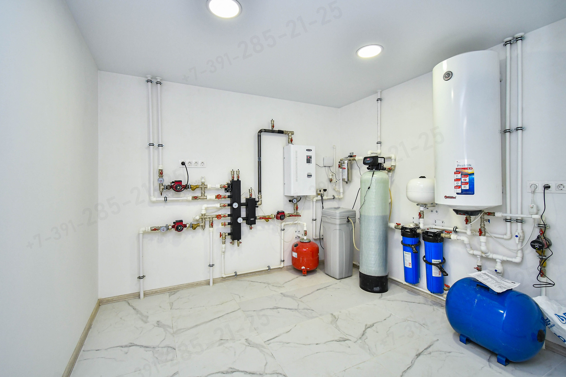 Обогрев дома происходит равномерно за счет системы теплых полов (260кв.м): несколько часов нагрев – далее поддержание заданной температуры.