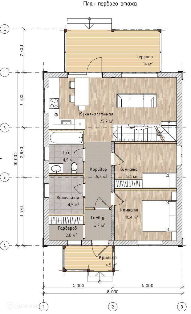 1-ый этаж 80 кв.м. студия + 2 спальни - предчистовая отделка