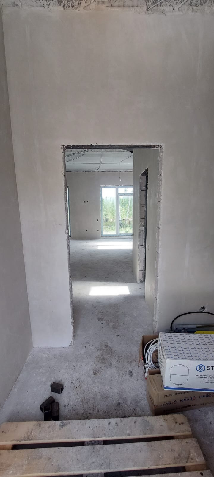В доме выполнена предчистовая отделка; штукaтуpка, cтяжкa пола, водяной теплый пол, установлен электрический котел, разводка электрики по всему дому. Есть возможность подключить газ!