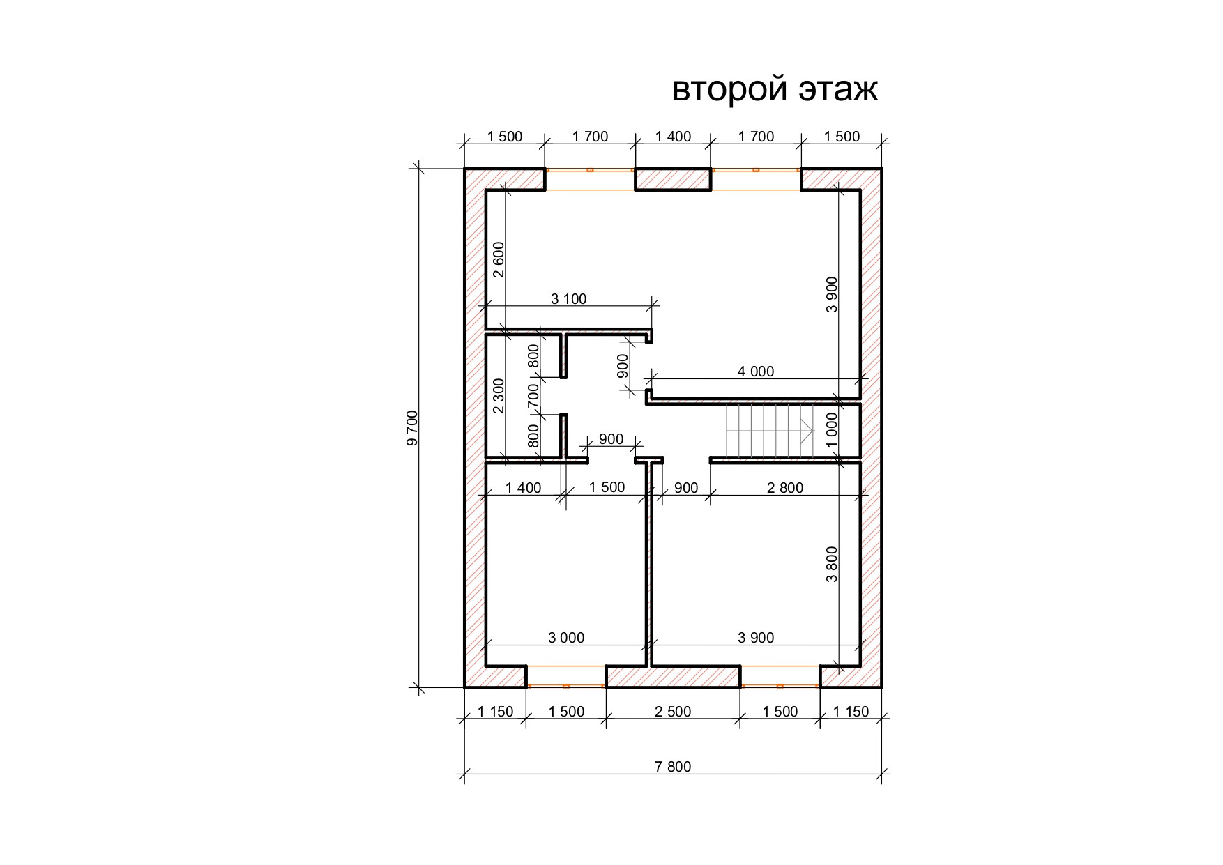 Второй этаж: 3 спальные комнаты, с/у.