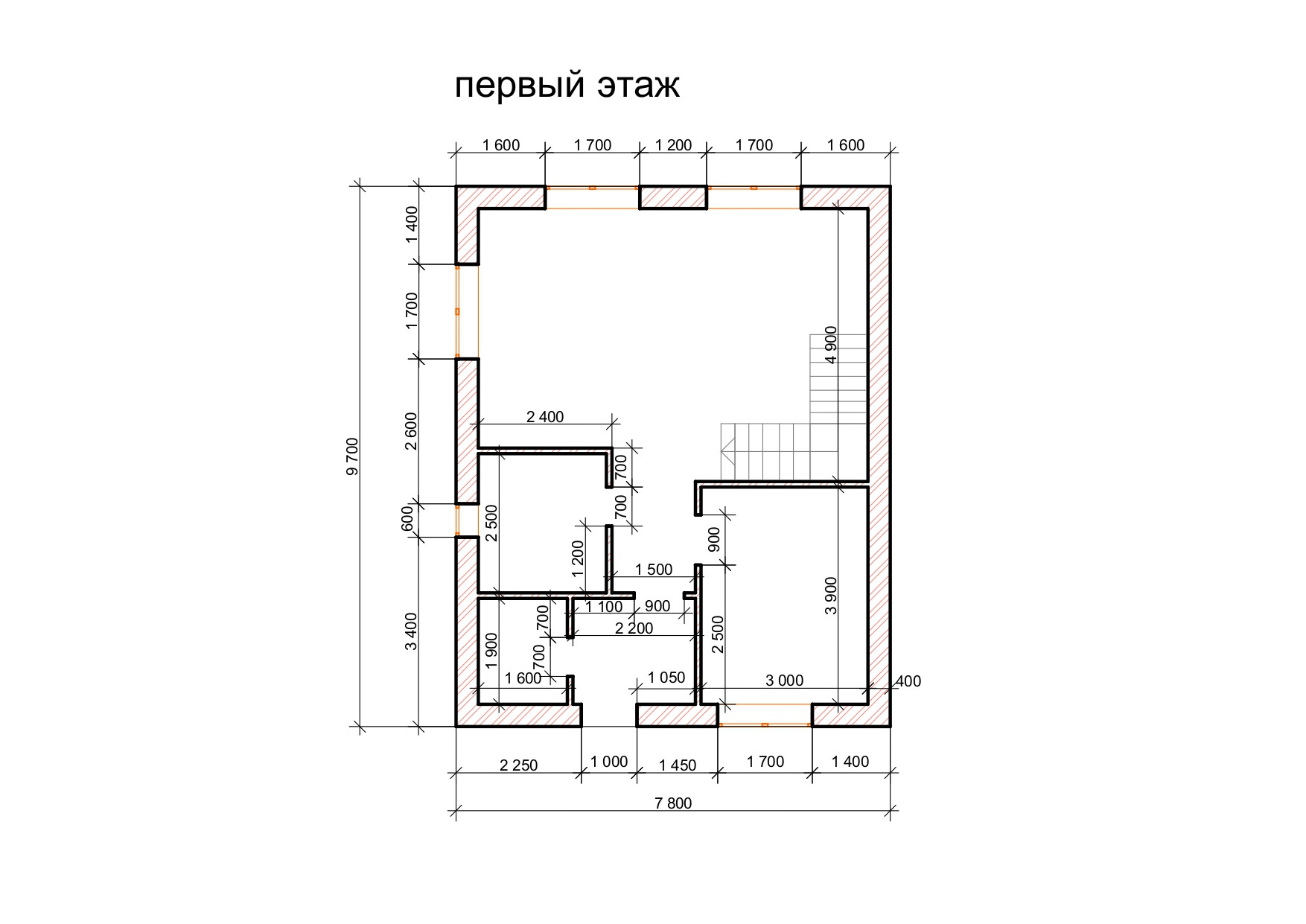 Первый этаж: просторная кухня с гостиной, спальная комната, с/у , техническая комната.