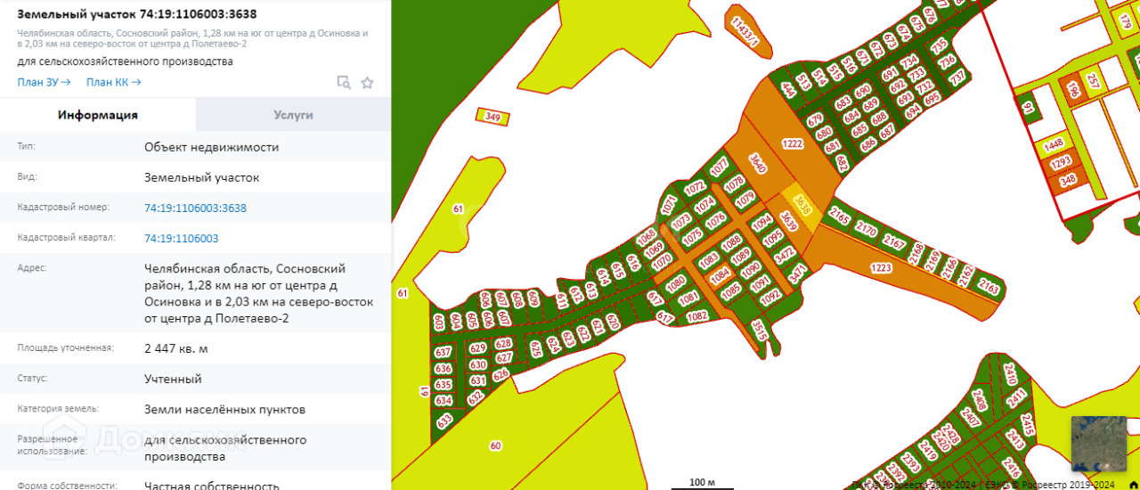Кадастровый номер участка 74:19:1106003:3638.