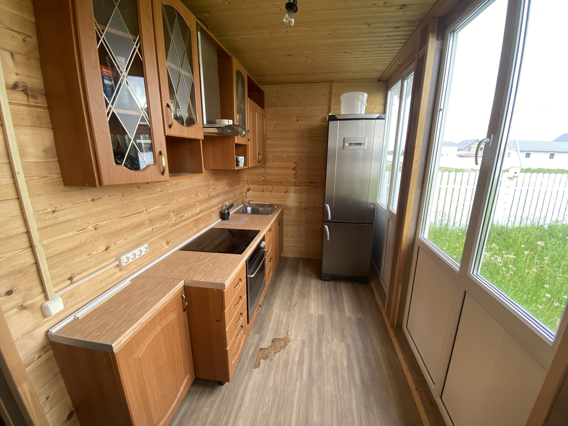 В Доме установлена Кухня с варочной панелью, духовым шкафом, вытяжкой, холодильником.