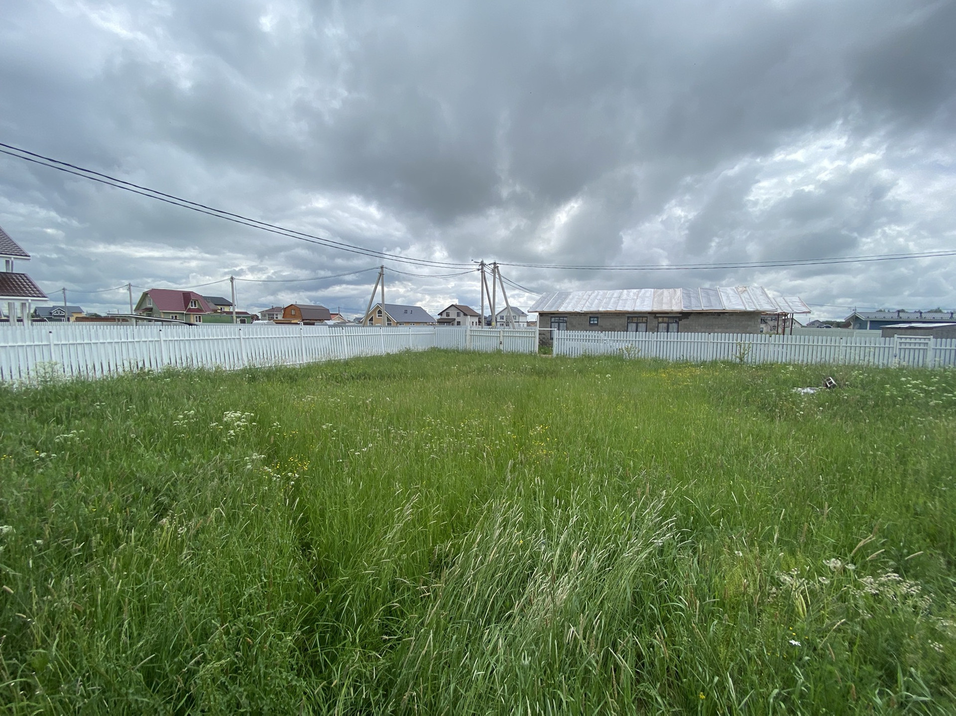Участок угловой, сделан заезд. Сухой и ровный, завезено 20 камазов чернозема. По периметру огорожен забором из штакетника, сделаны 2 калитки и ворота распашные.