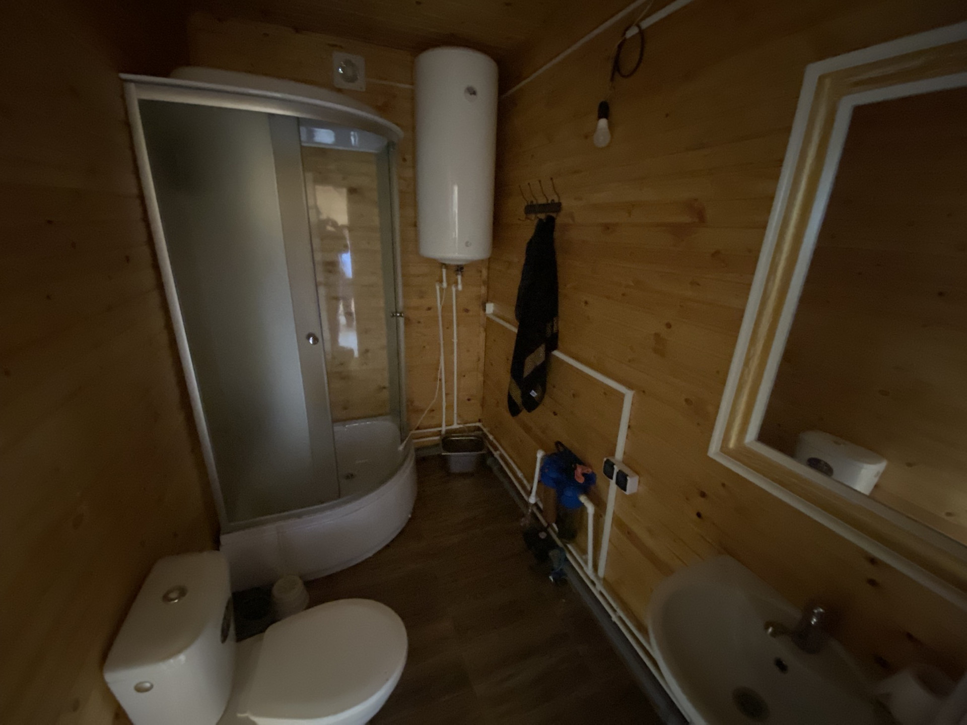 Бойлер на 100 л, душевая кабина и туалет.