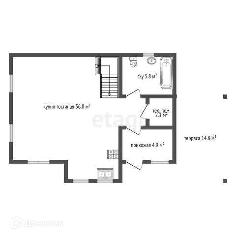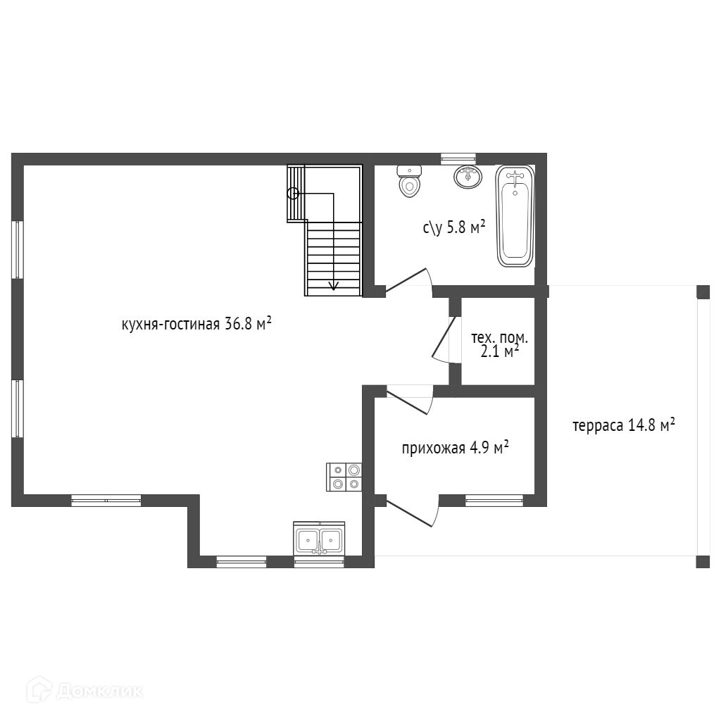 - просторная кухня-гостиная 36,8 кв.м;