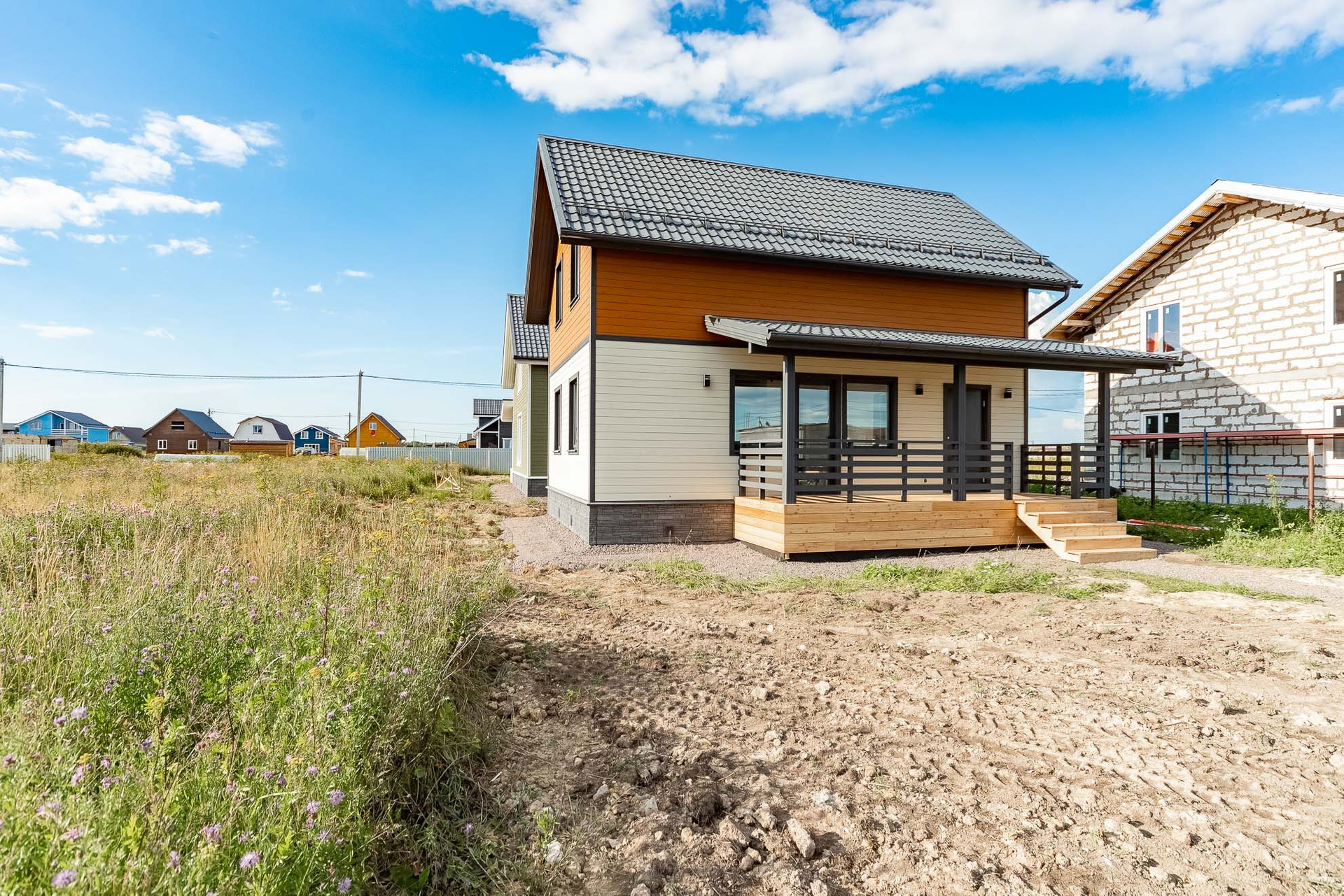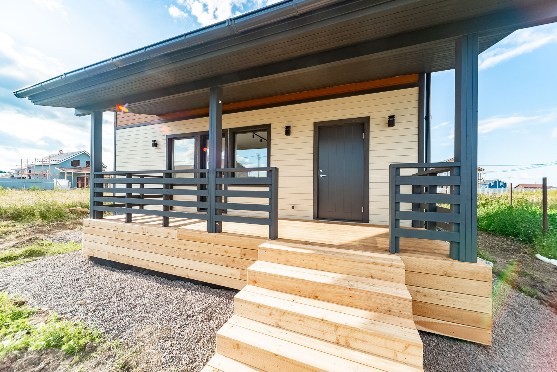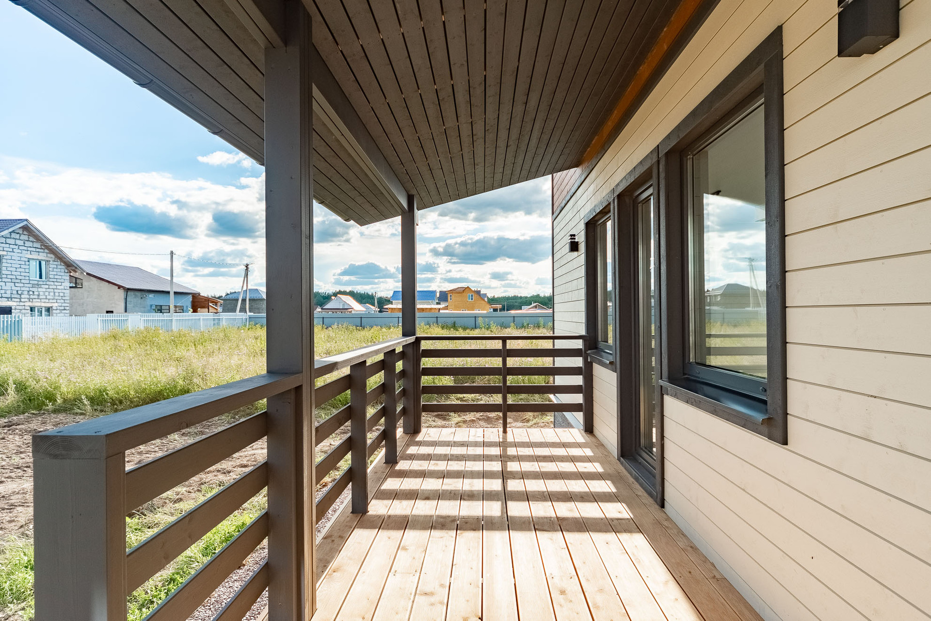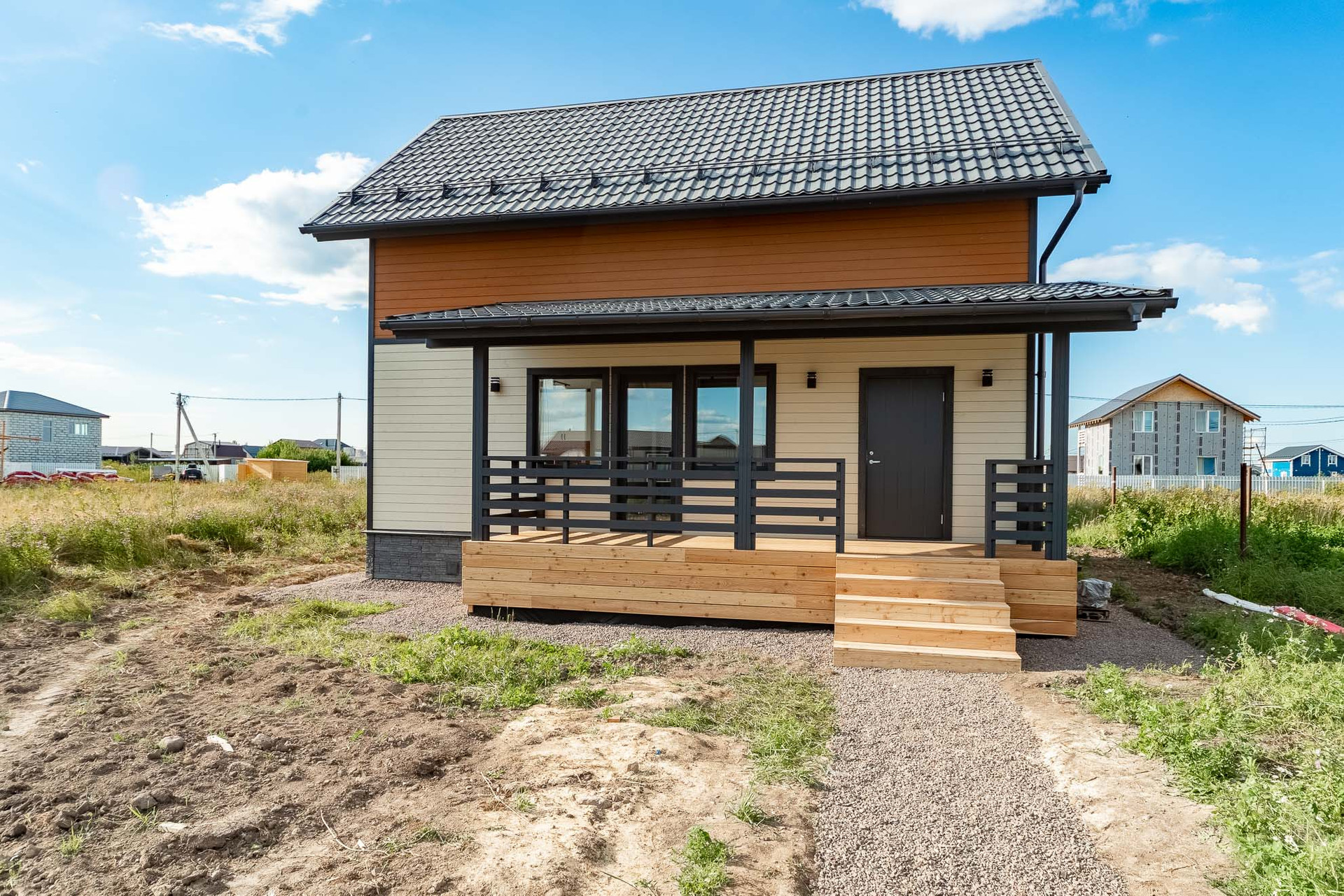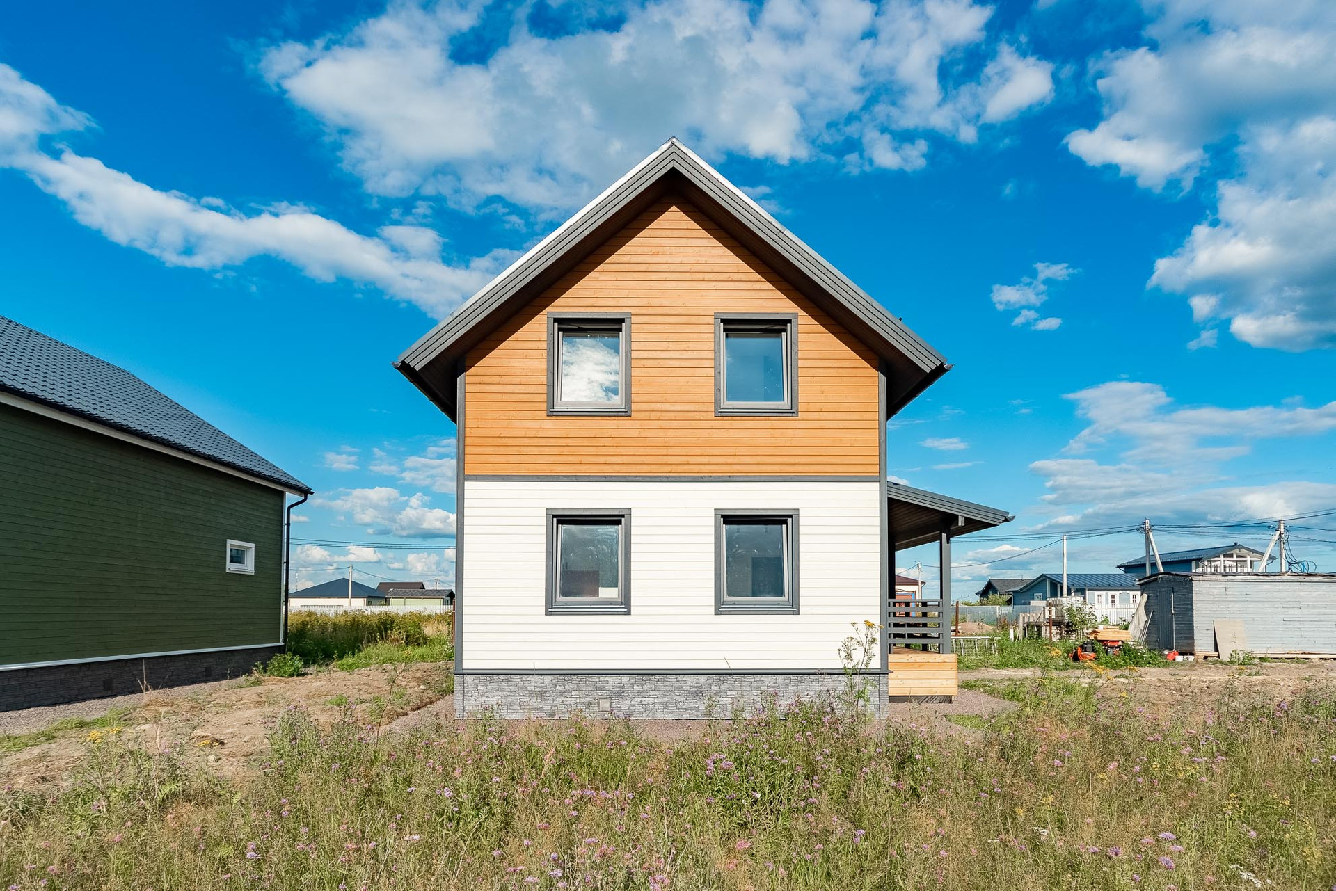 Построен компанией "Петербургские Каркасные дома". При строительстве использовалась "Технология утепленного скандинавского каркаса", которая позволяет добиваться максимальной энергоэффективности от дома, что в свою очередь позволяет значительно экономить на отоплении.