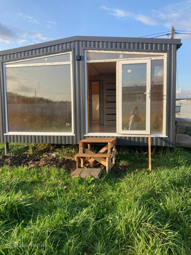 Зимний дом, 7 на 5. В стиле барн хаус. 2 отдельные комнаты и зал- кухня.Сделан по финской технологи каркасного домостроения. Утепление Роквал. Стены 150. Пол и потолок 200. Герметичный. 2  комнаты по 5,5 кв метра, сан узел с душевой 3,5 кв. К дому подведены коммуникации: Септик на 3 Куба. Электричество 15,кВт заведено в дом. Участок 7,25 сотки. На участке вагончик  12,5 метров для хранения вещей, засыпано место под паркову. На машине до Спб не более часа. Инфраструктура (садик, школа и пр. в 6 км. от дома). Сделаны коммуникации под воду и разведены. Возможен вариант обмена на студию в Спб с доплатой в Вашу пользу.