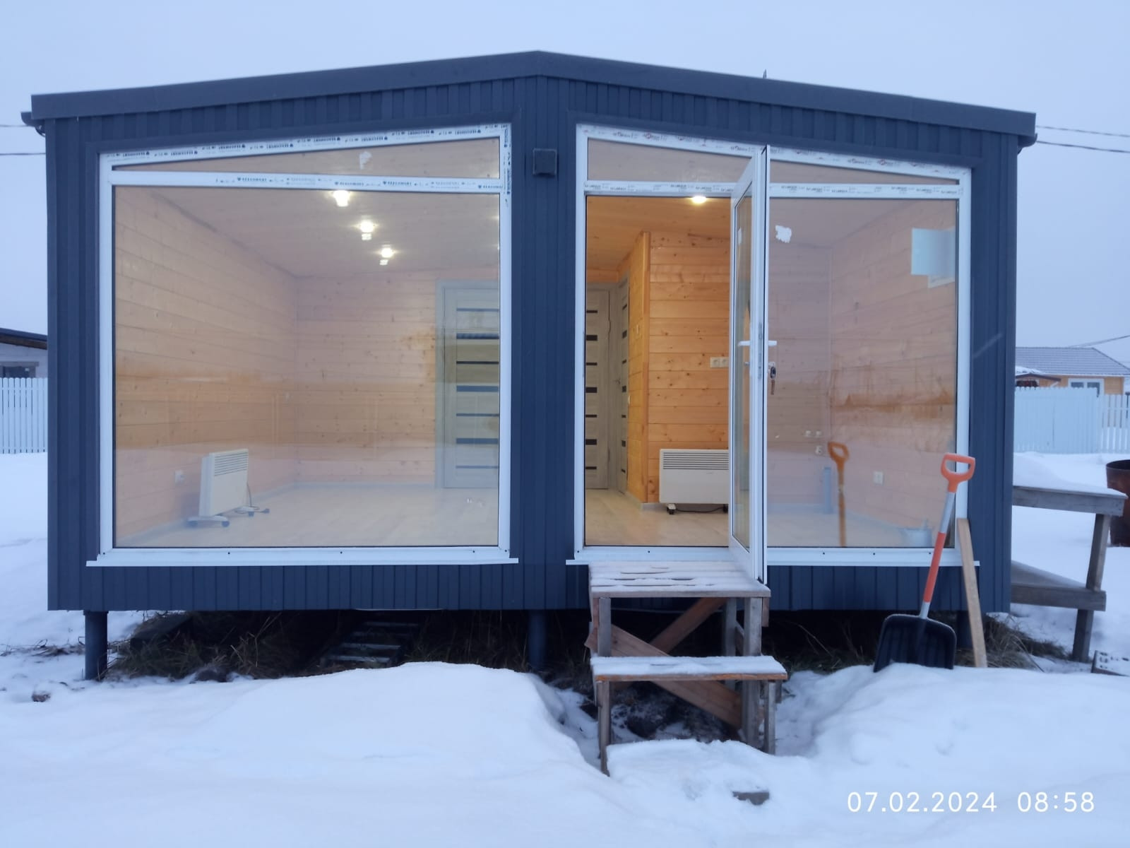 Построен по финской технологи каркасного домостроения. Утепление Роквал. Стены 150. Пол и потолок 200. Очень уютный и вместительный.