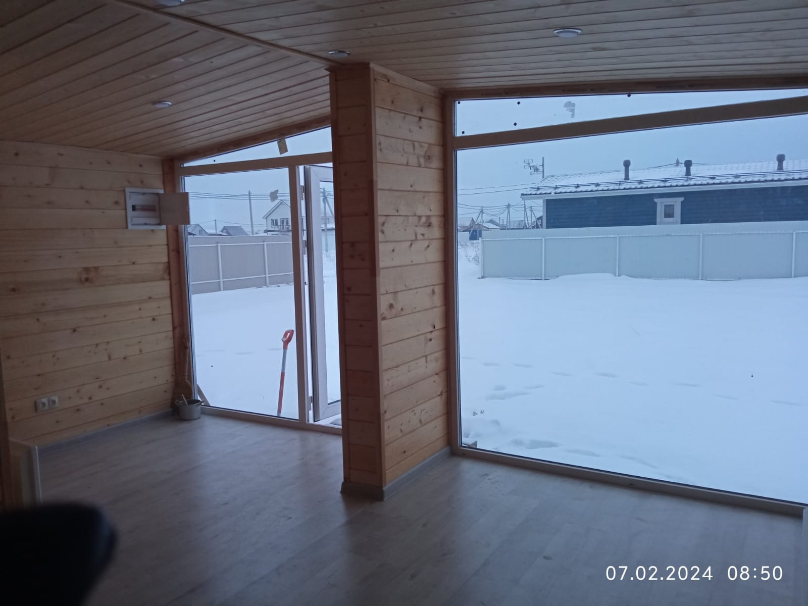 Дом построен по каркасной технологии, очень хорошо утеплен, окна с двухкамерными стеклопакетами.