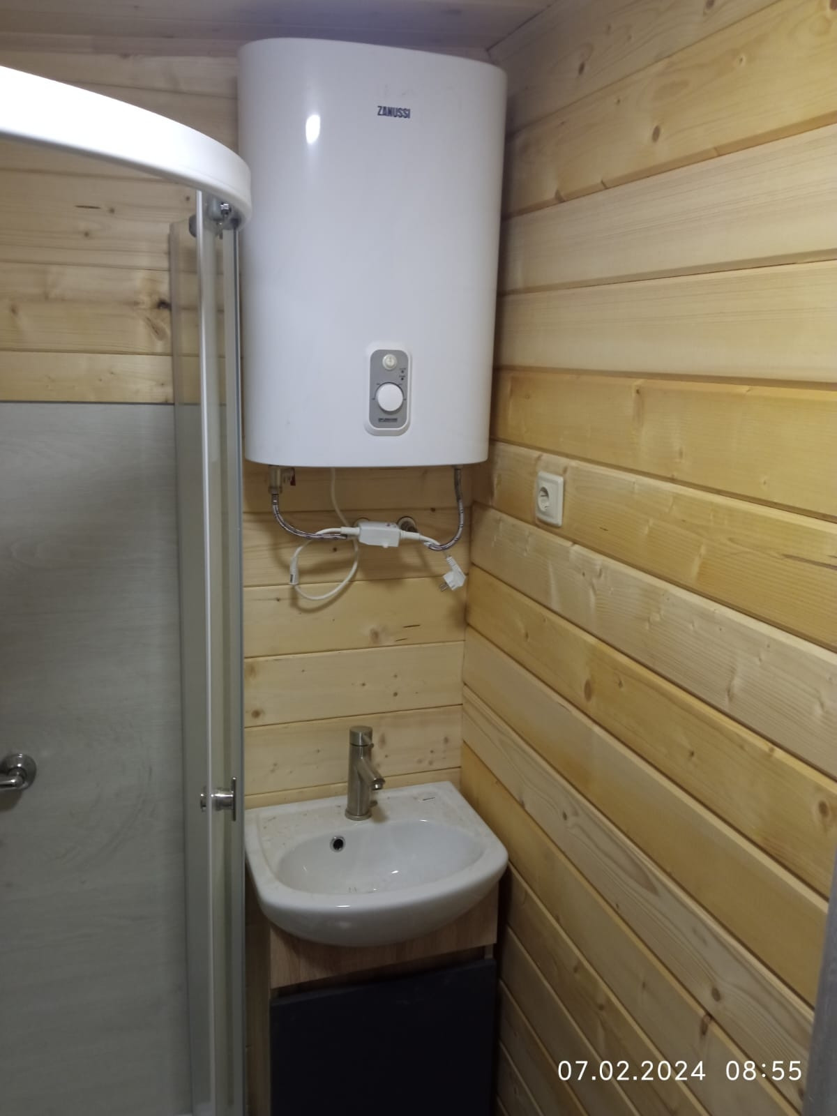 - сан узел с душевой 2,6 кв м (установлен унитаз, душевая кабина, водонагреватель на 35 литров Zanyssi)