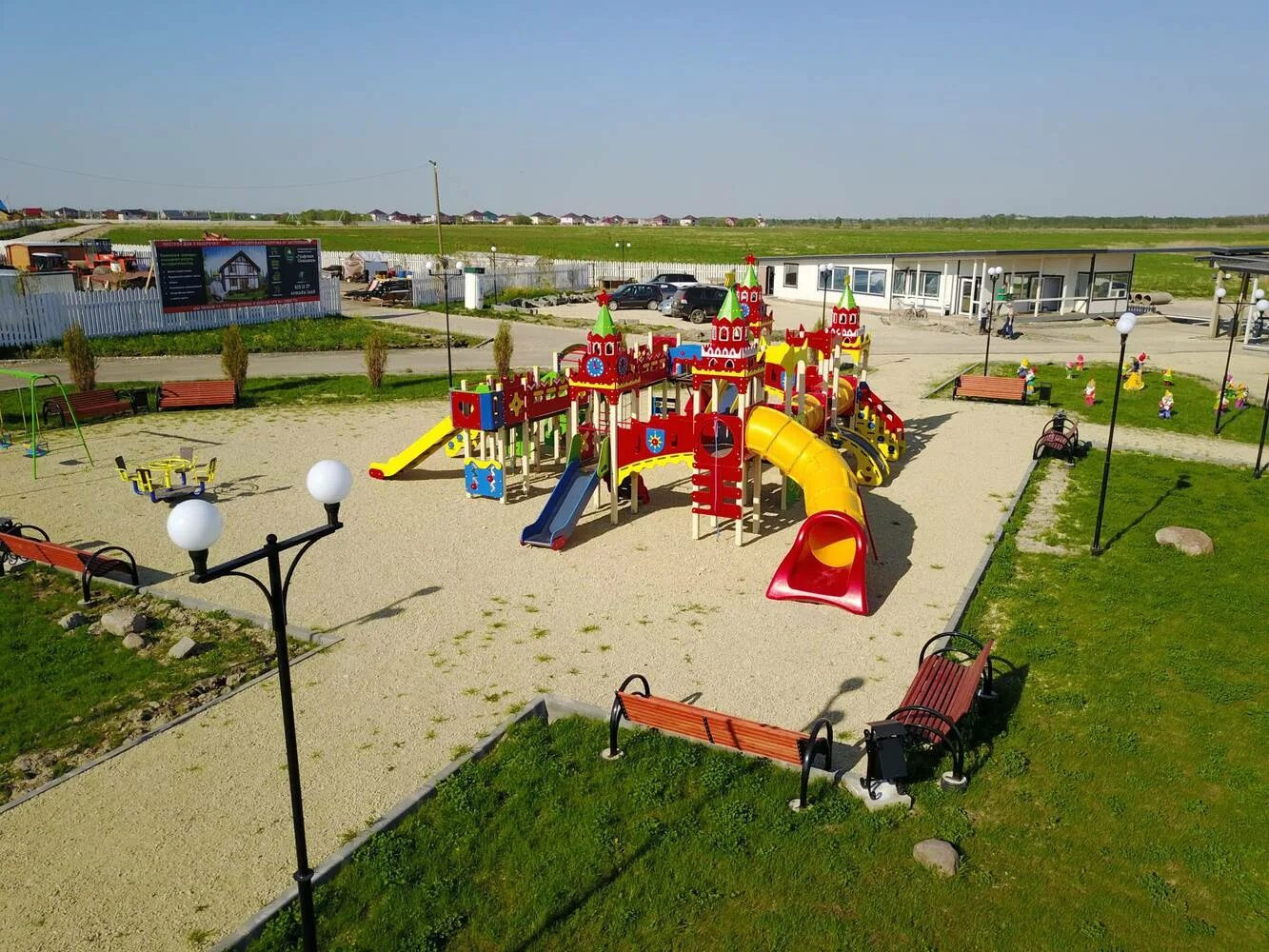 На территории посёлка есть небольшие магазины,  детская площадка с большим детским городом и травмобезопасным покрытием. Спортивные площадки. Зоны отдыха. Рядом лесной массив и водоём. Школа, детский сад, бассейн и вся инфраструктура в 10 минутах в посёлке Коммунар.