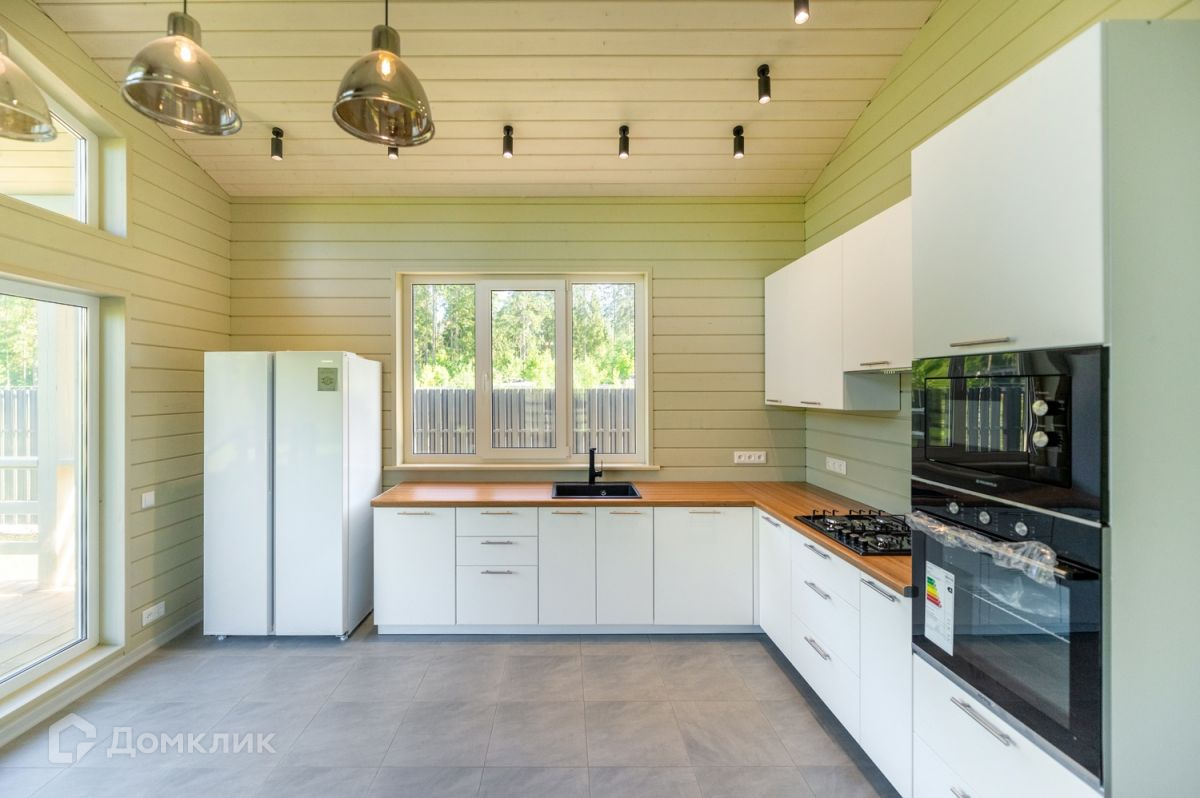 В доме выполнена полная внешняя отделка и внутренняя чистовая отделка с установкой сантехники в трех санузлах и новой кухни со всей необходимой встроенной техникой.