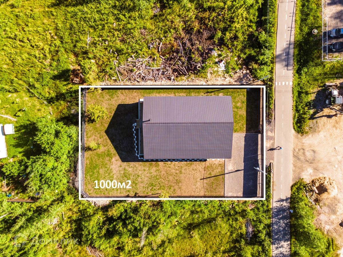 Участок полностью подготовлен для дальнейшего благоустройства - выкорчеван, выровнен, засеян газон. На въезде на участок запланировано место под навес или гараж, перед домом оставлено место под зону барбекю.