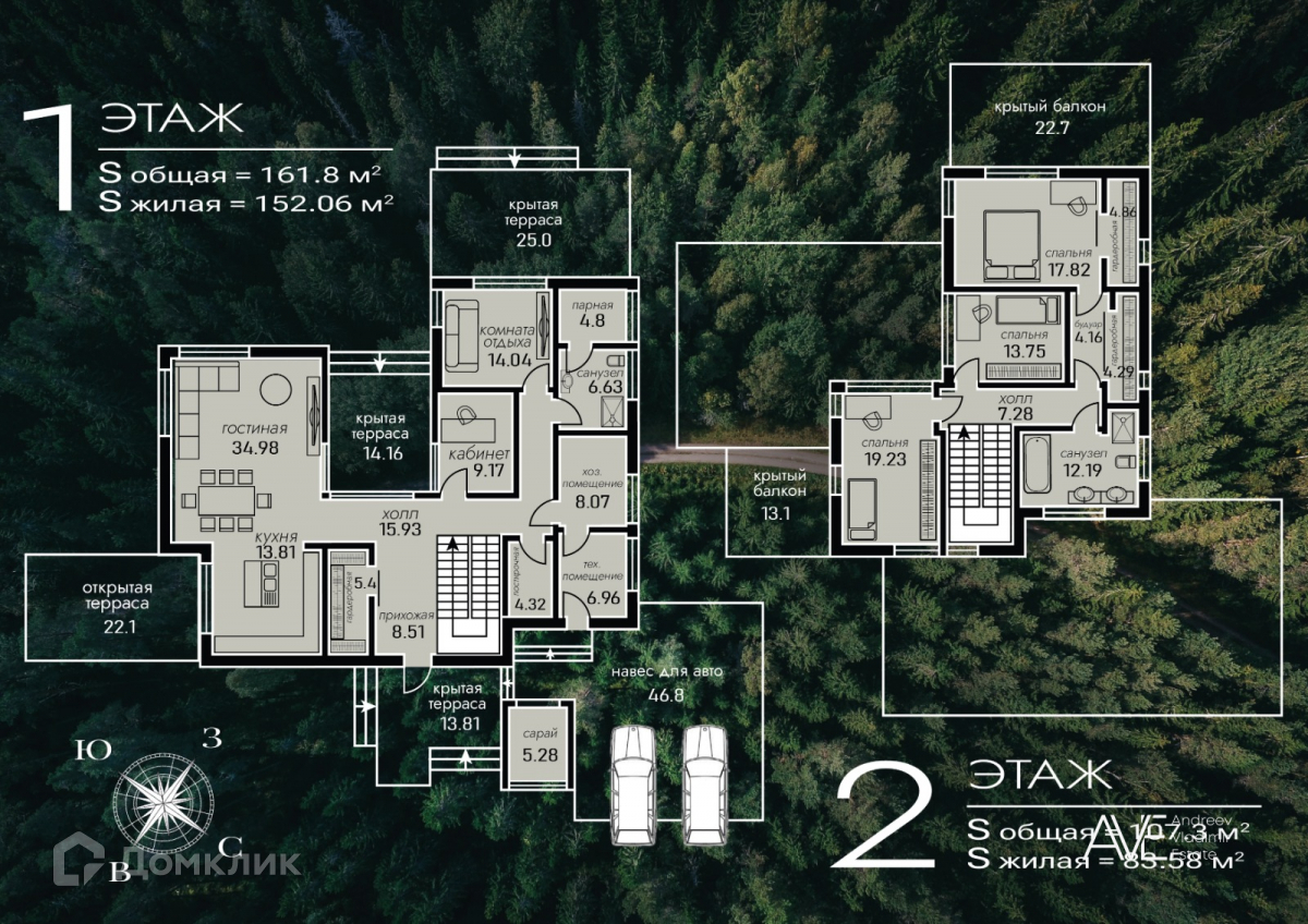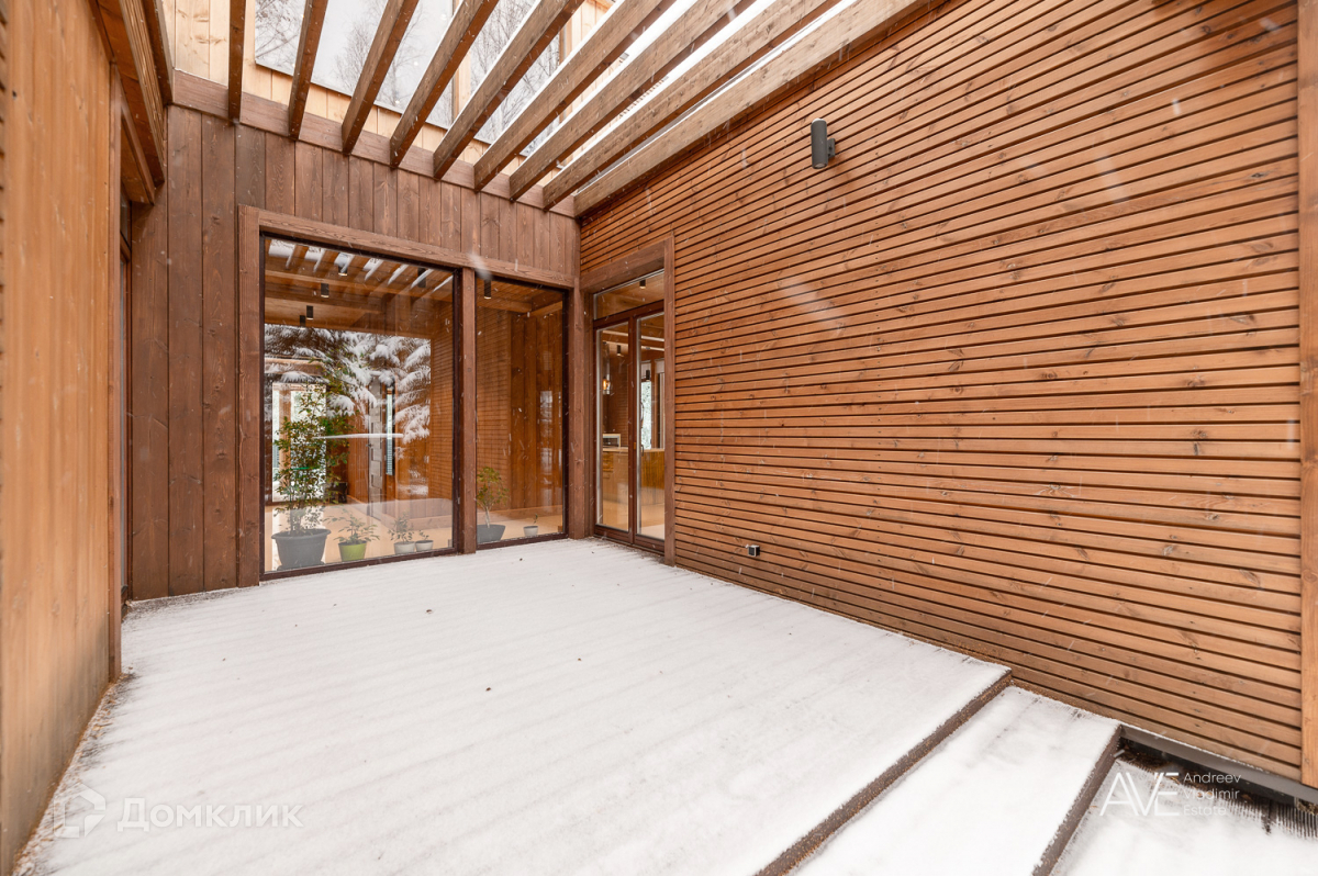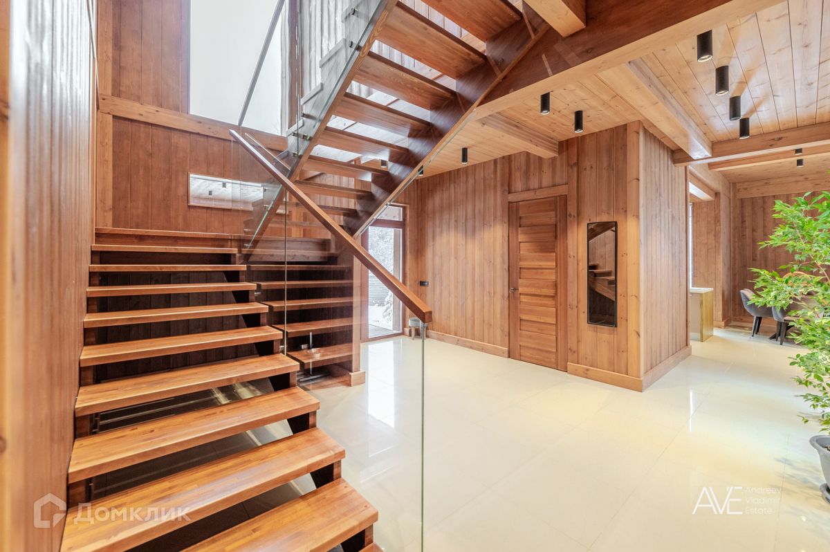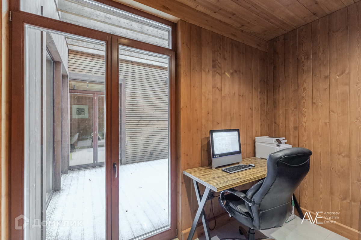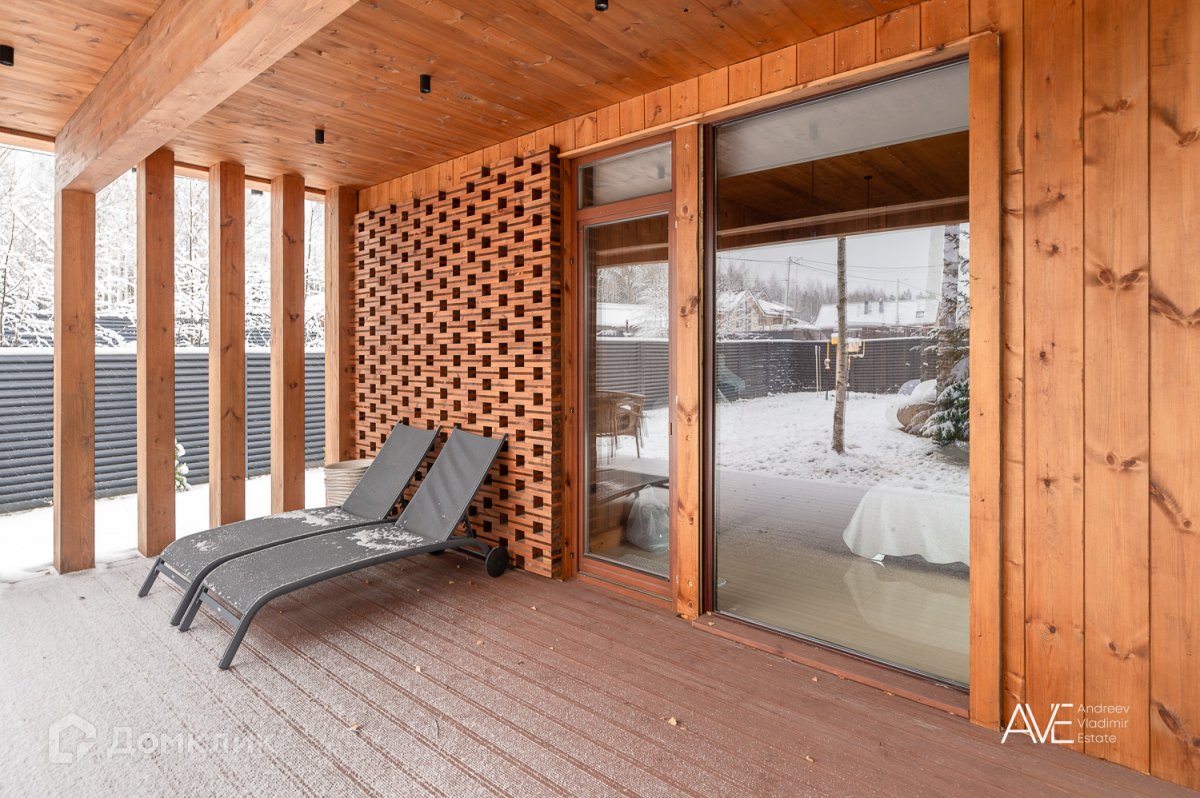 На втором этаже расположены две детские спальные комнаты, одна из которых со своим выходом на просторную эксплуатируемую кровлю, просторный санузел с отдельно стоящей ванной и душевой, а так же хозяйская спальня с двумя гардеробами и выходом на крытую уютную террасу с видом на лес и озеро.