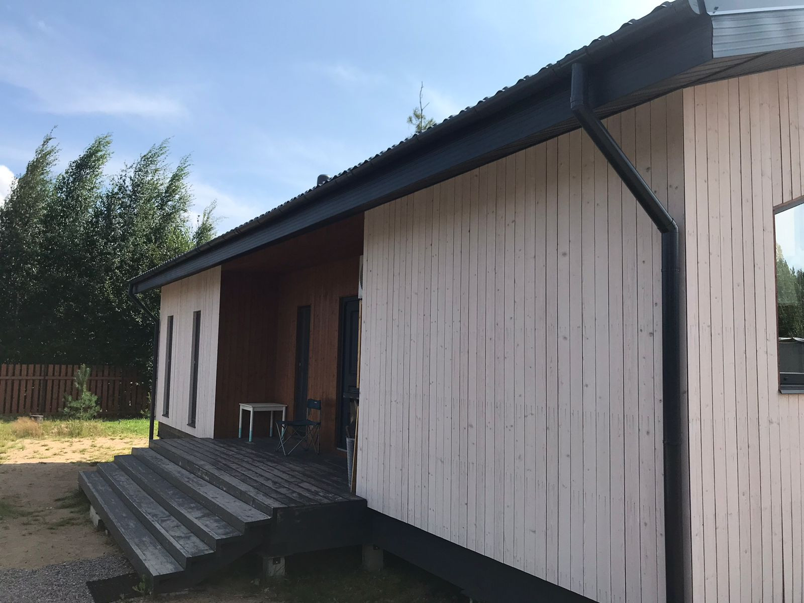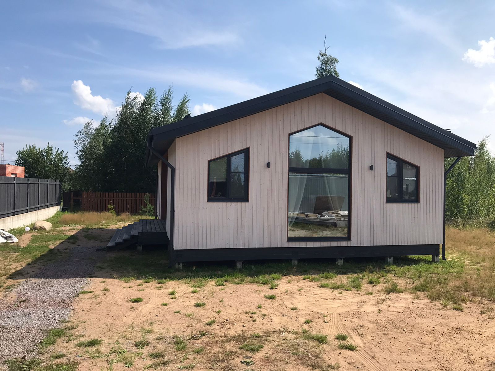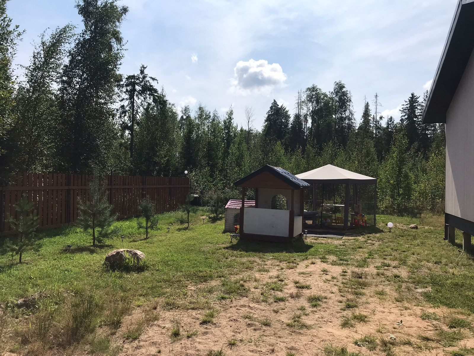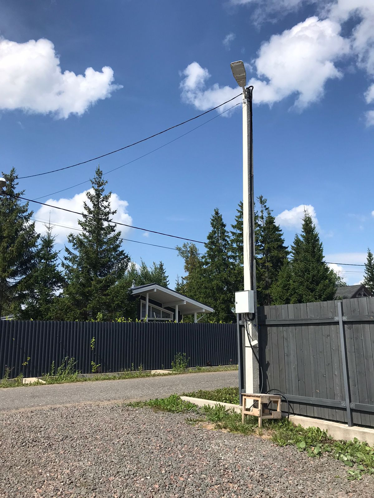 На участке большой заезд, дренаж, свой столб с освещением(управляется с пульта).