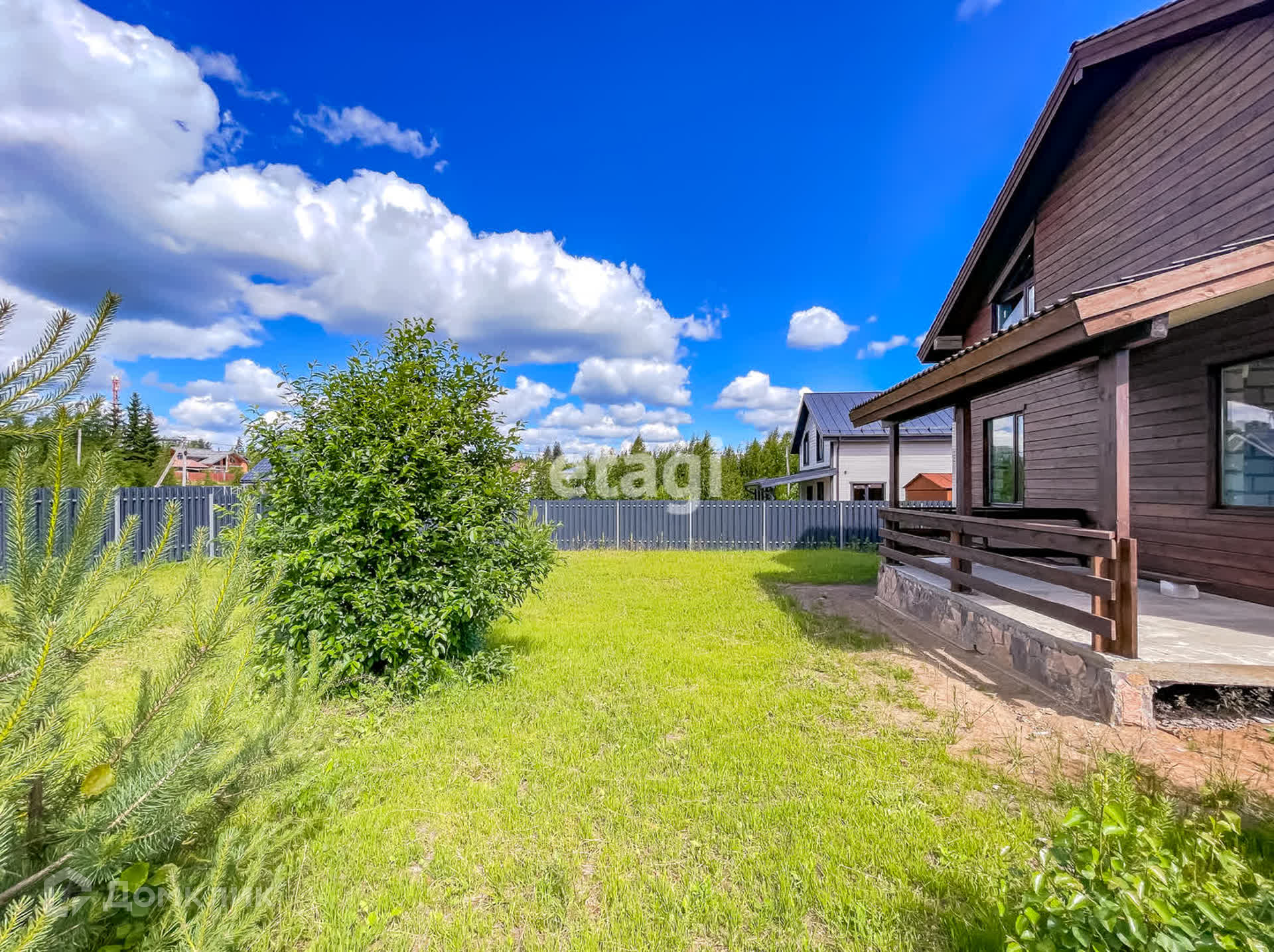 Участок огорожен красивым забором (Штакетник)