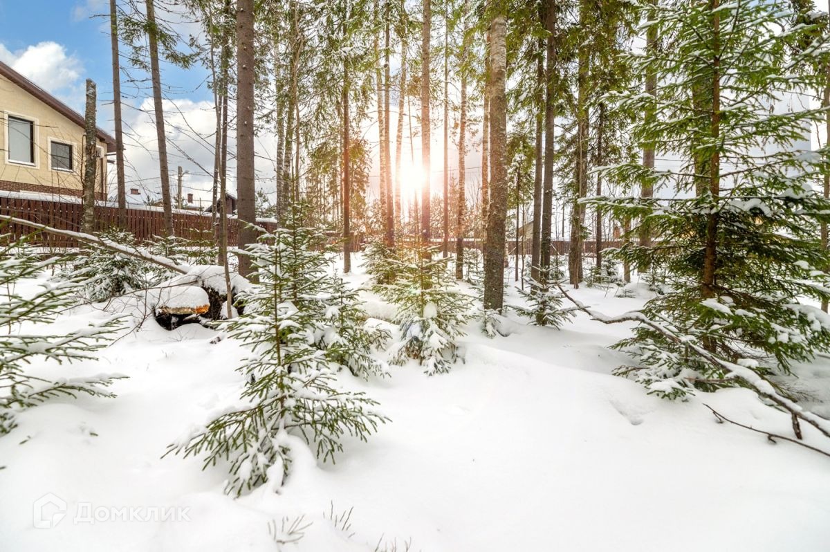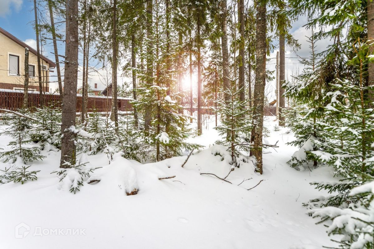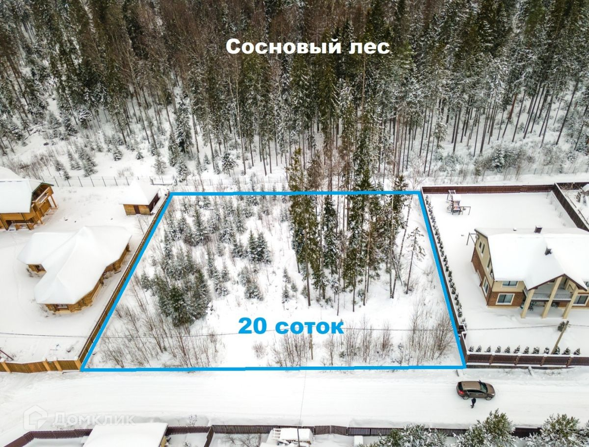 В продаже земельный участок 20 соток правильной прямоугольной формы, расположенный на границе с сосновым лесом и имеющий молодые ели и вековые сосны на своей территории.