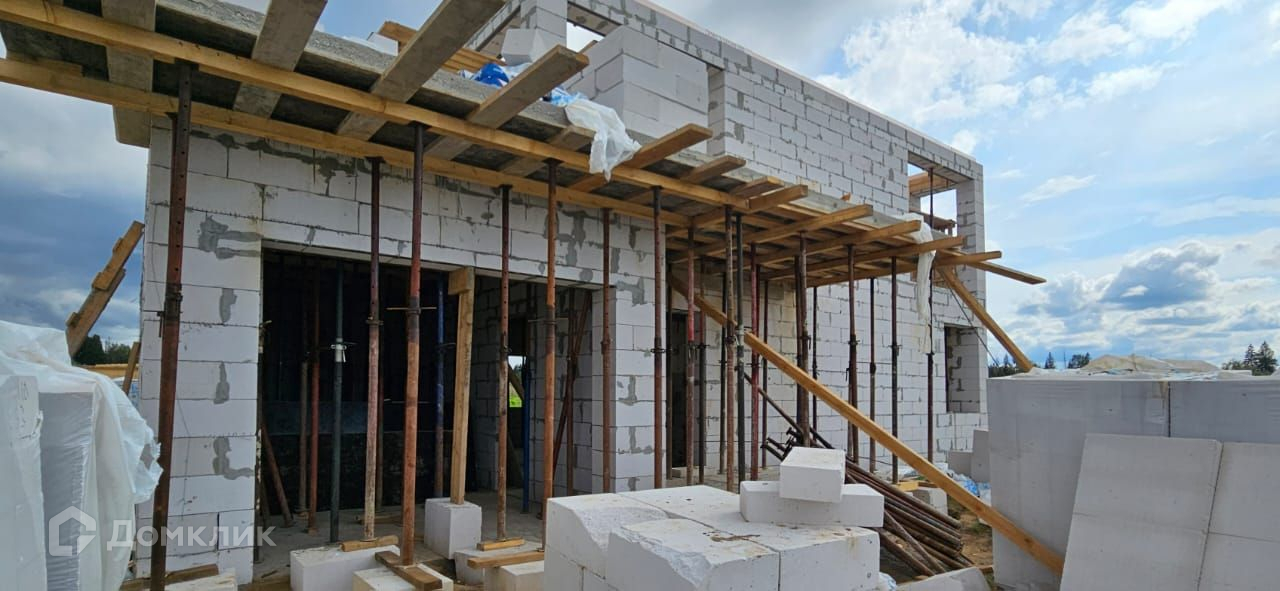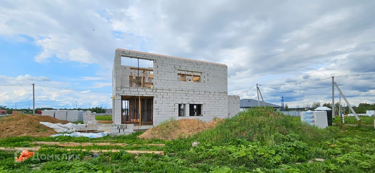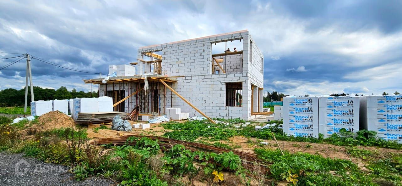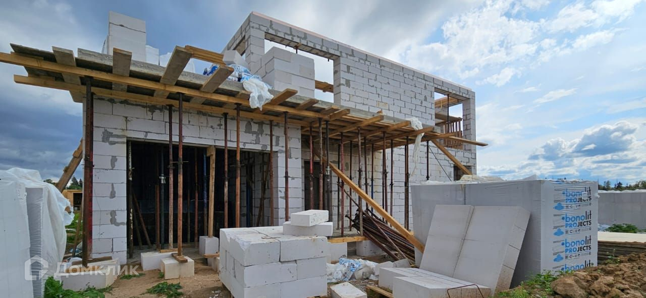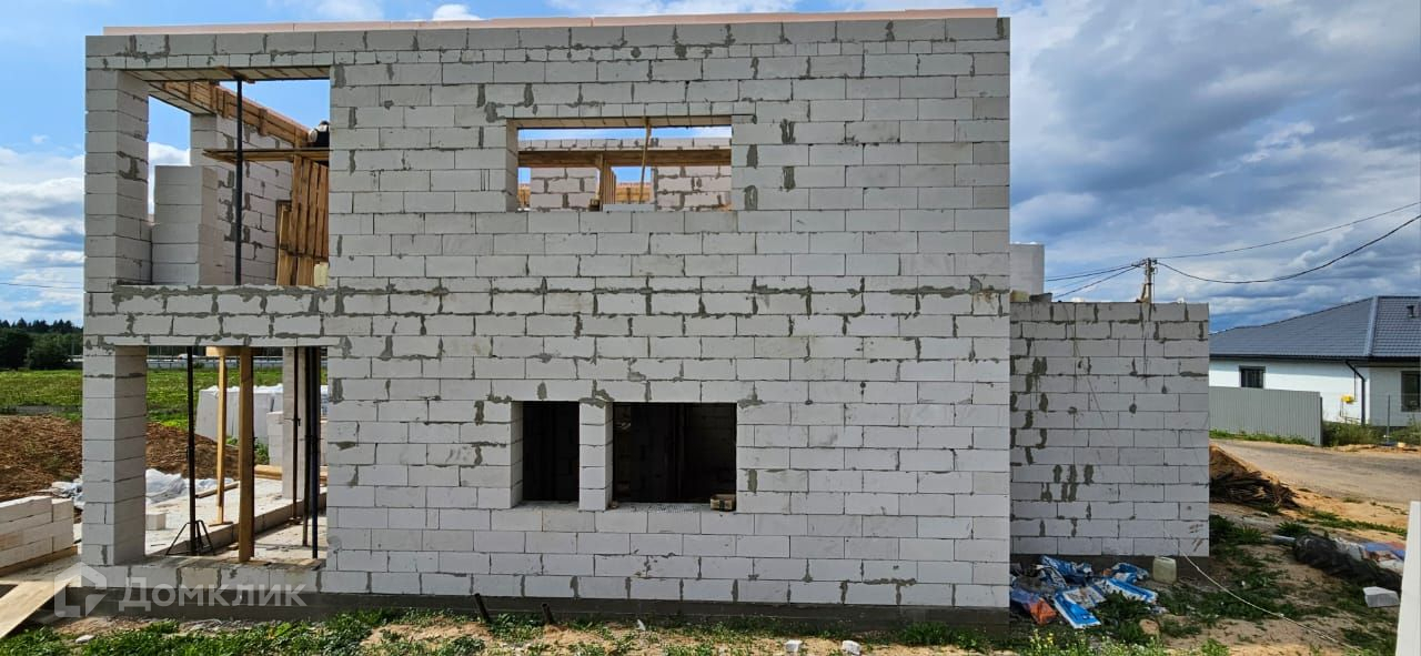 Дом выполнен из газоблока 400 х 250 х 600 мм, имеет утепление снаружи (100 мм минвата),  фундамент - монолитная плита с ростверком, крыша и межэтажное перекрытие - монолитная плита. Согласно проекту, для облицовки дома будет использован клинкерный кирпич, вагонка и штукатурка для наружных работ. К дому подключено электричество 15 кВт, центральное водоснабжение,водоотведение септик (кольца), магистральный газ. Во всем доме большие панорамные окна, которые добавят света и пространства.