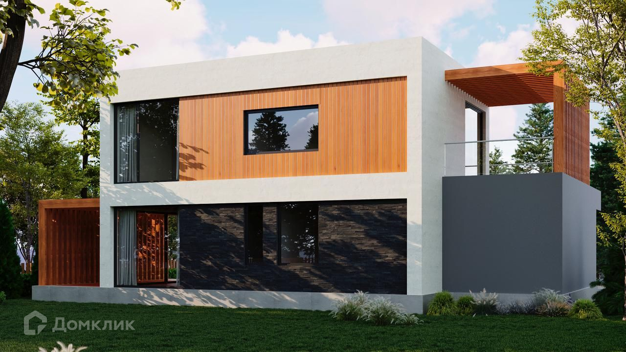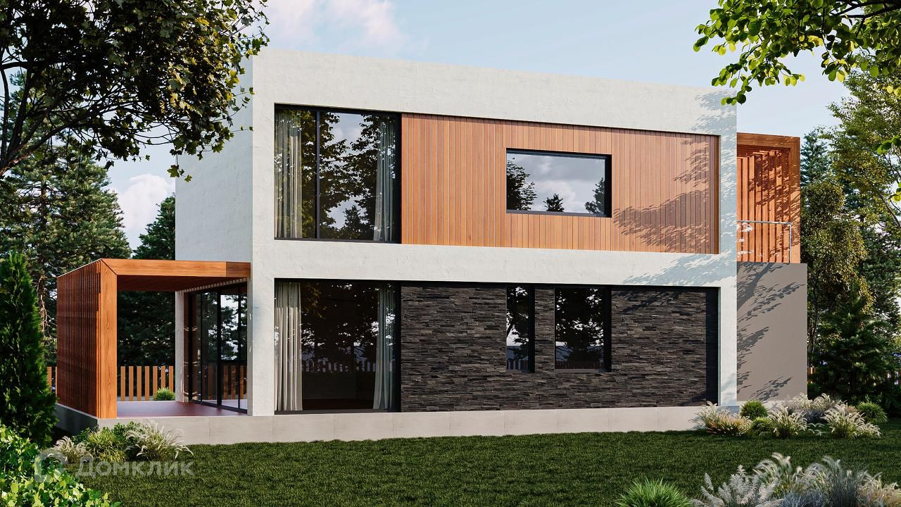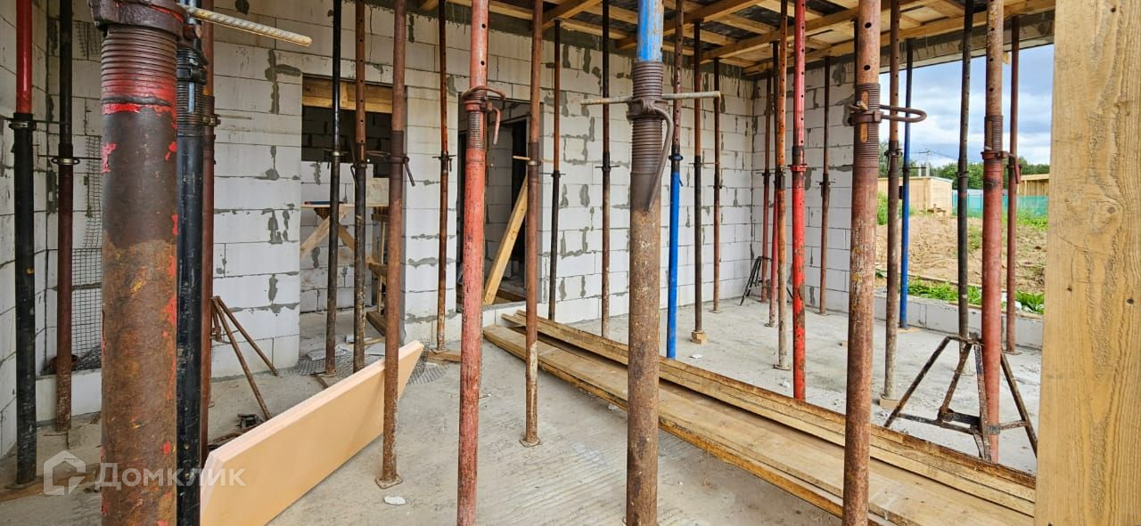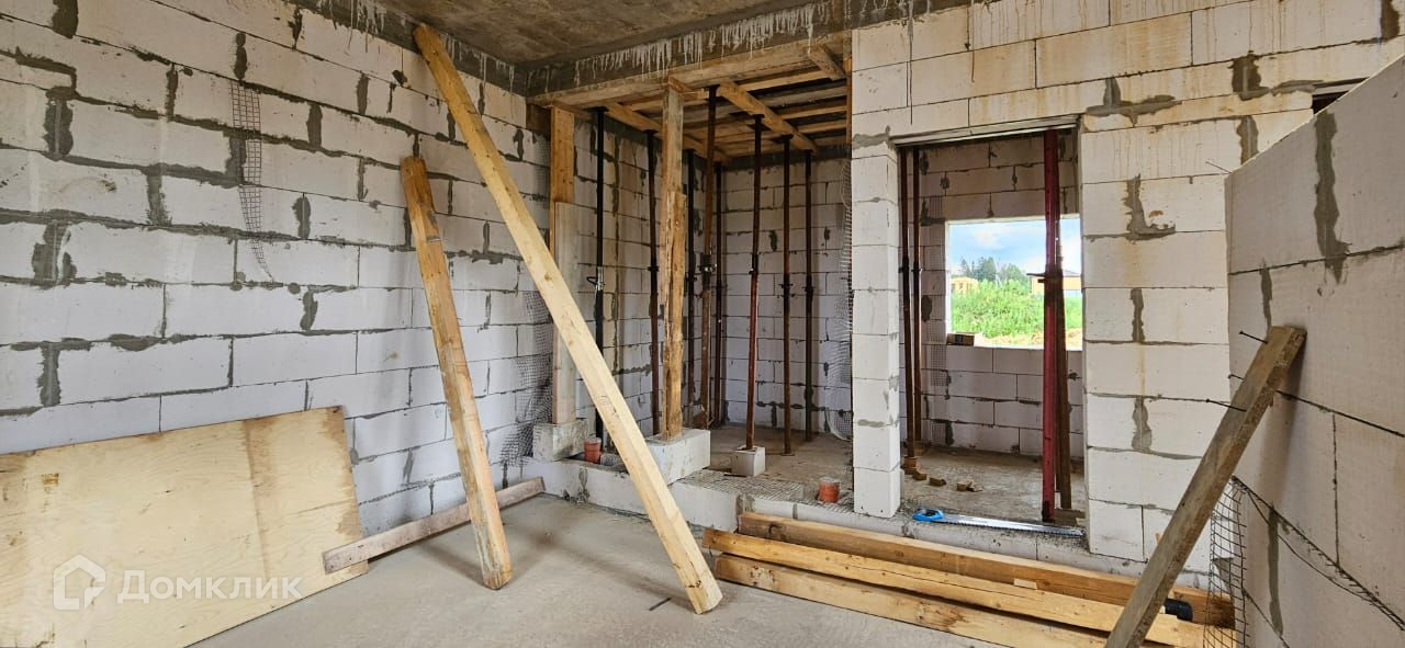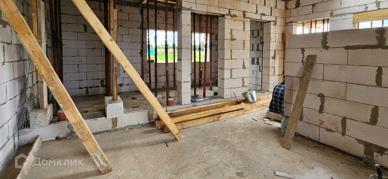 Дом выполнен из газоблока 400 х 250 х 600 мм, имеет утепление снаружи (100 мм минвата),  фундамент - монолитная плита с ростверком, крыша и межэтажное перекрытие - монолитная плита. Согласно проекту, для облицовки дома будет использован клинкерный кирпич, вагонка и штукатурка для наружных работ. К дому подключено электричество 15 кВт, центральное водоснабжение,водоотведение септик (кольца), магистральный газ. Во всем доме большие панорамные окна, которые добавят света и пространства.