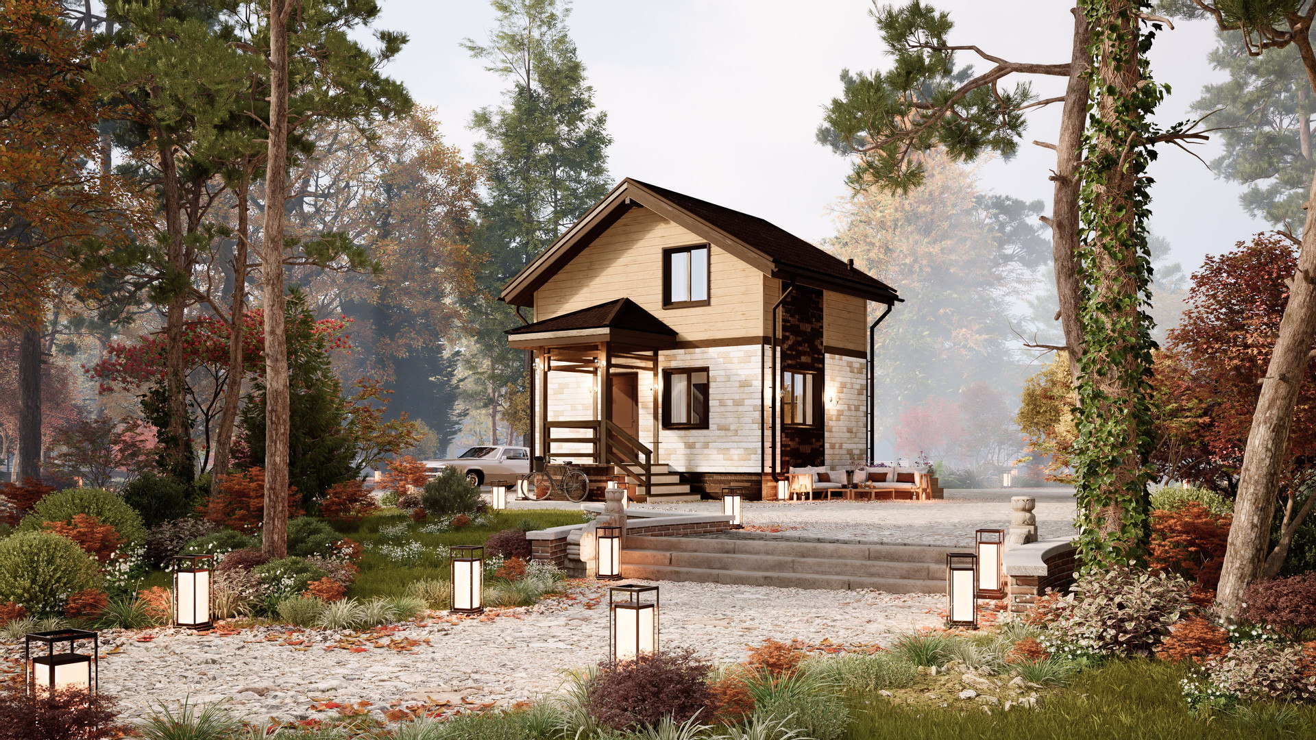 Дом имеет общую площадь 80 м² и идеально впишется в проект на небольшом участке земли. Несмотря на скромные размеры, в доме есть всё необходимое для комфортного проживания.