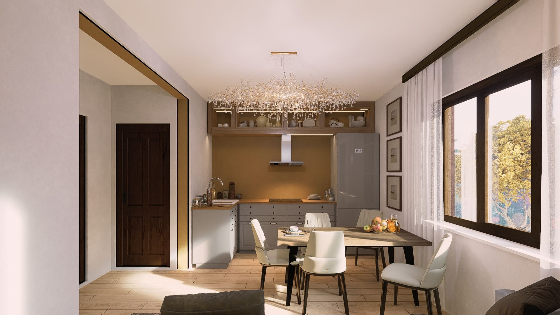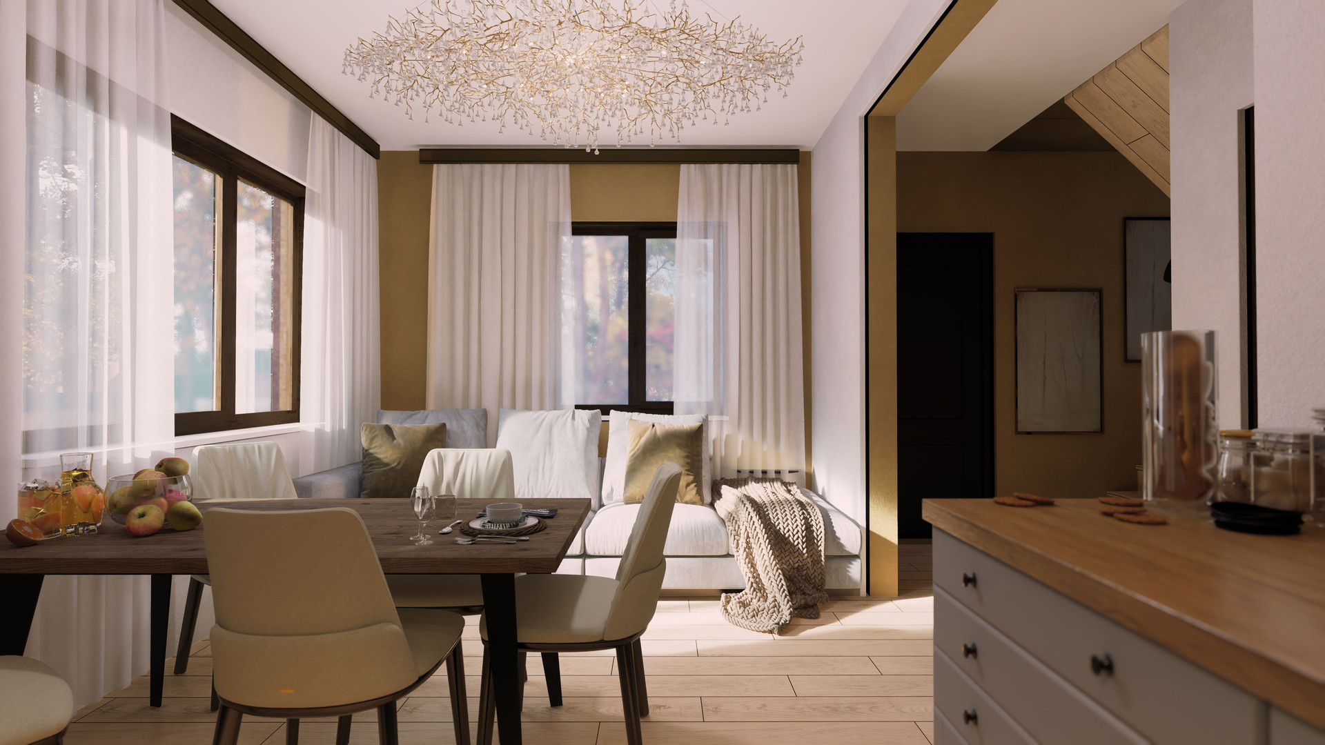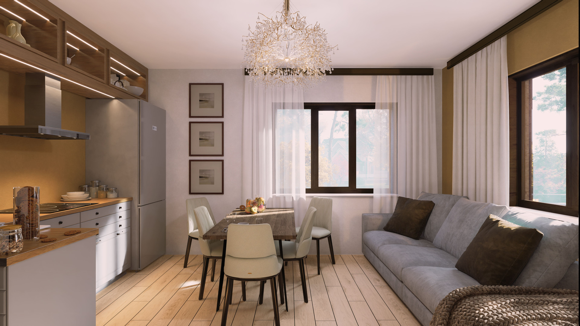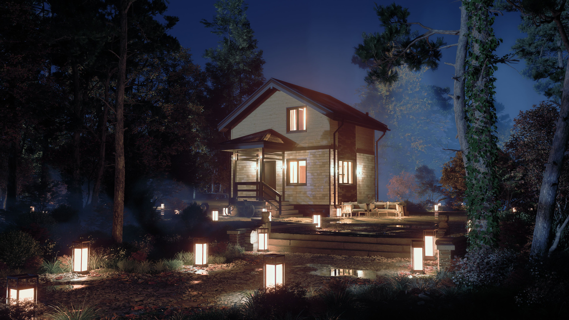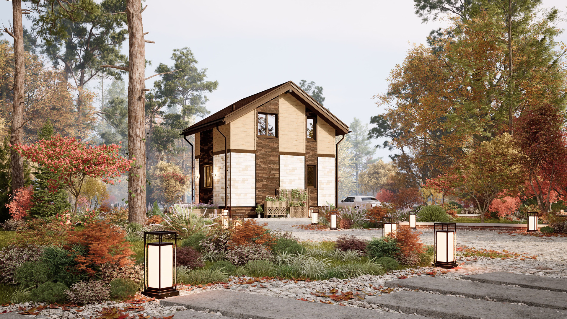 Дом выполнен в современном стиле с использованием качественных материалов и продуманных деталей, что делает его стильным и привлекательным.