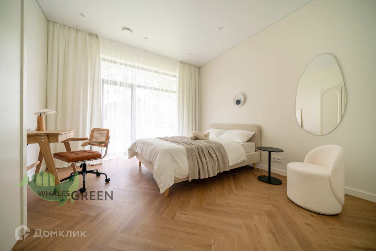 Огромная кухня-гостиная (53 м2) с кладовой для хранение, панорамные окна с видом на деревья, уютная мебель, лучшая техника. Две отдельных комнаты (спальни или кабинет) и большая мастер спальня со своим санузлом и гардеробной.