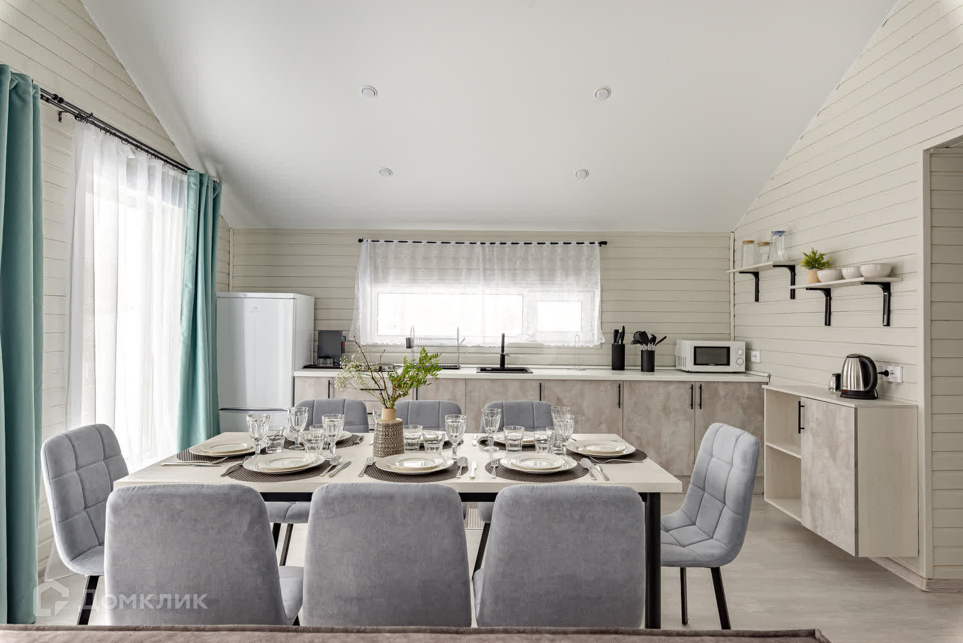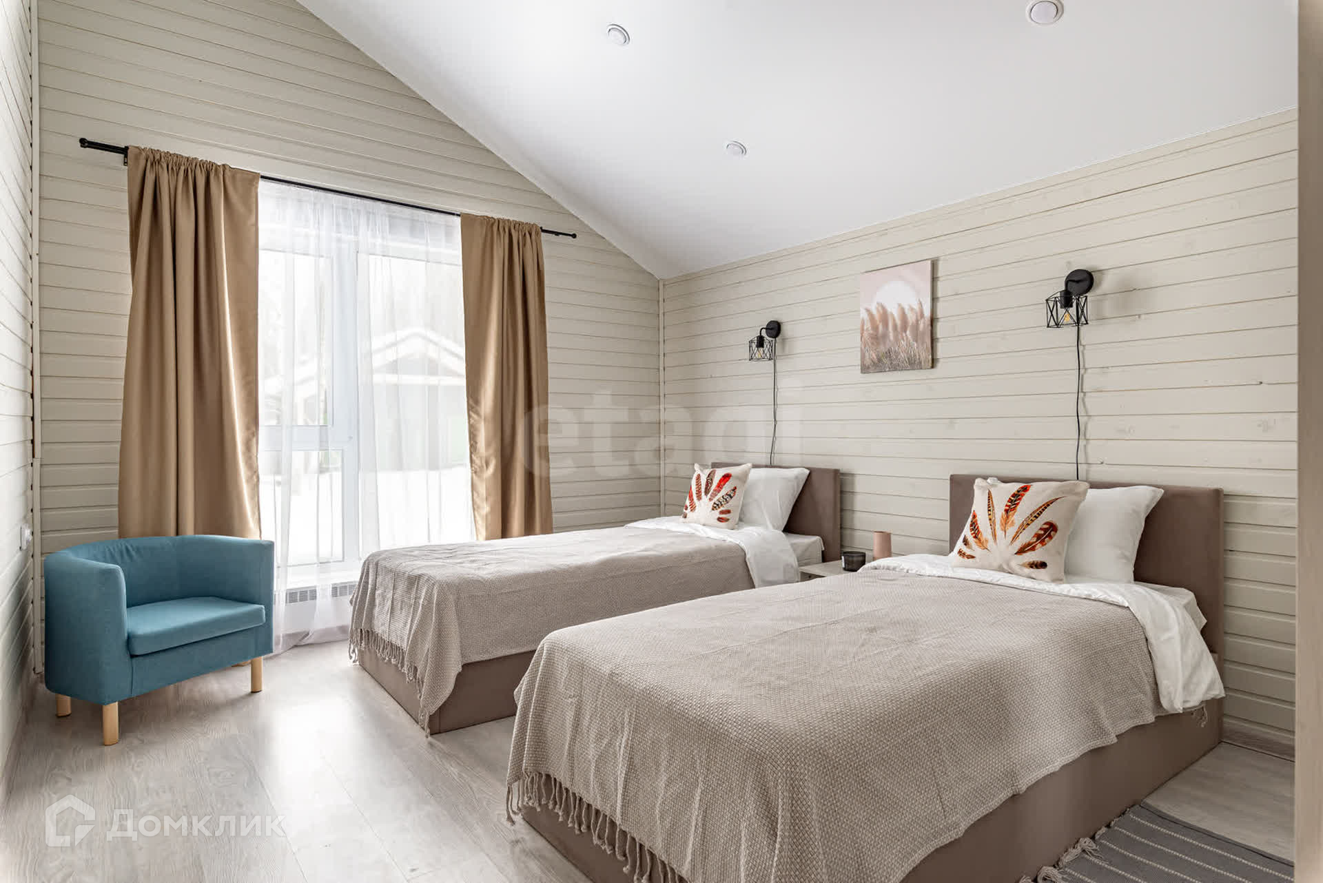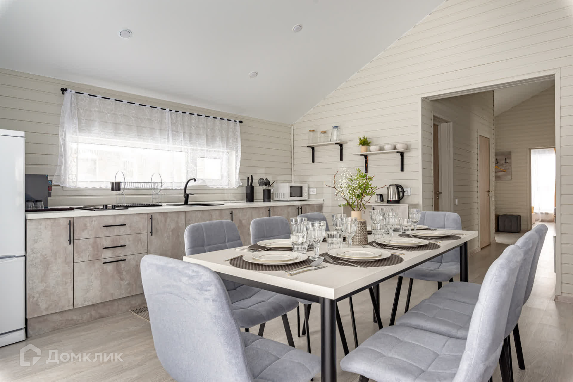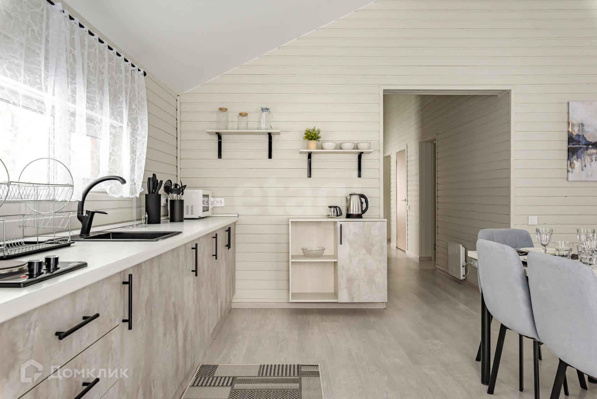 В этом доме можно устраивать встречи с друзьями и не переживать за детский сон - спальни находятся в отдалении от просторной кухни-гостиной. Общая зона светлая - окна выходят на 3 стороны, а пейзаж за окном приятен глазу.