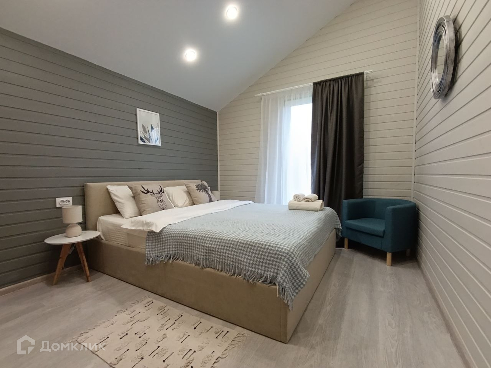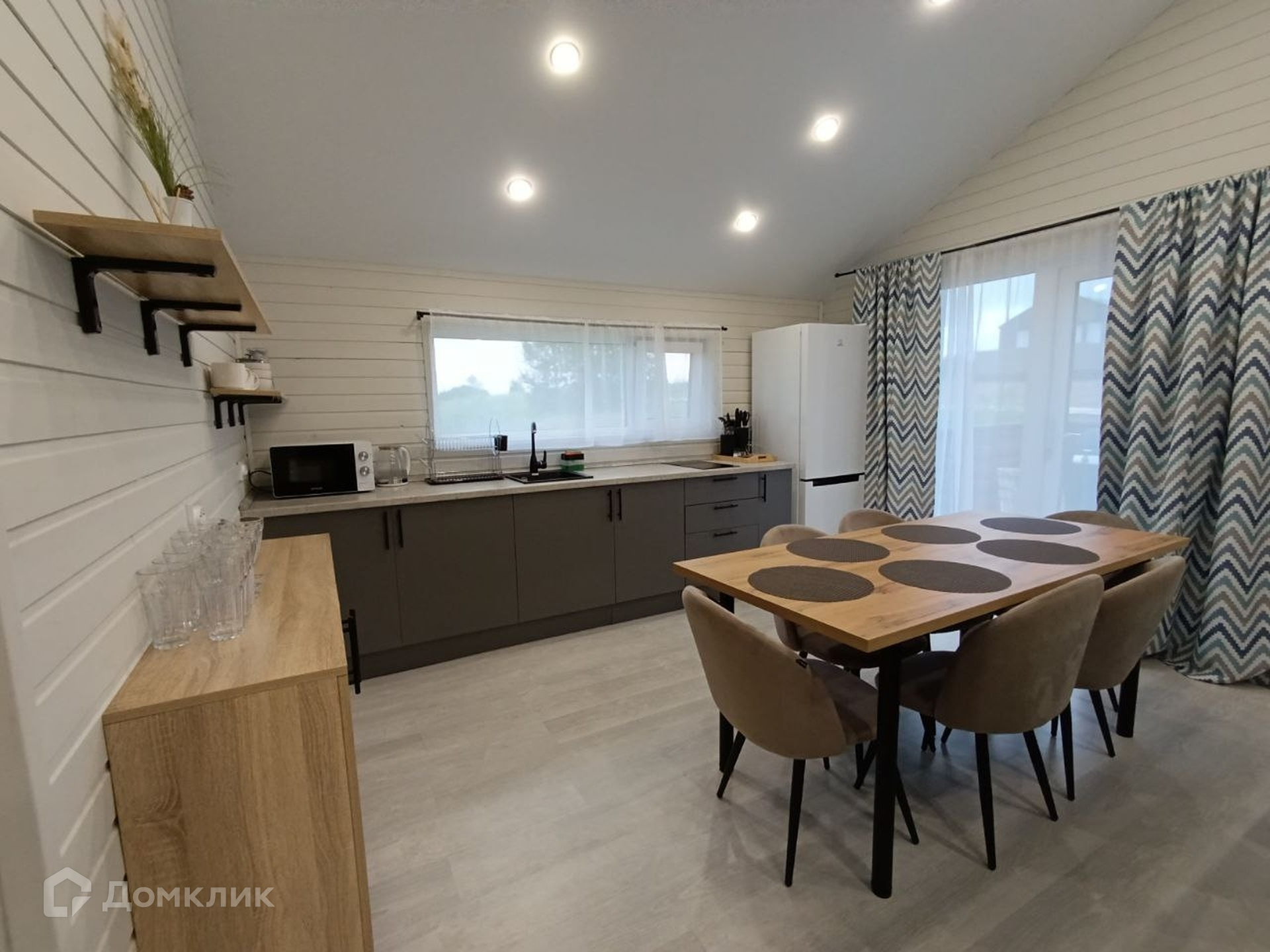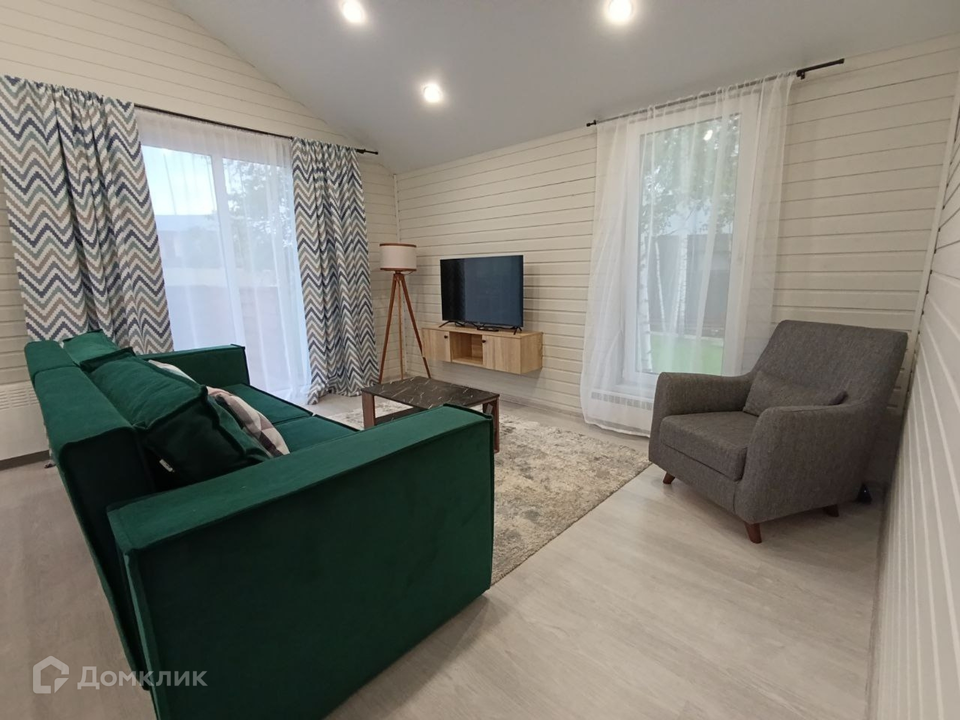 В доме: 2 спальни, прихожая, санузел, просторная кухня-гостиная.