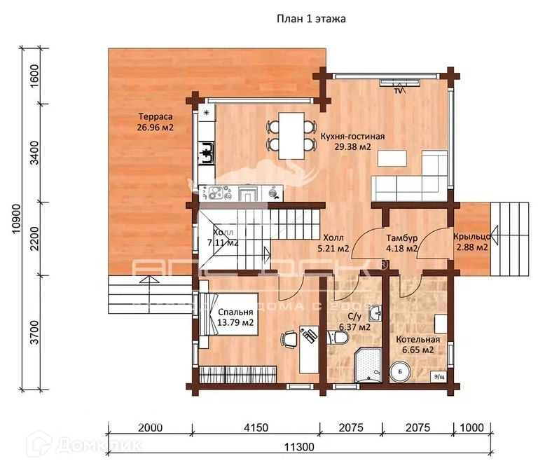 Арт. 552527 Двухэтажный дом из премиального высокого бруса 260х200 мм 3 спальных комнаты, 2 санузла С чистовой отделкой и мебелью. Цена за дом + участок 7,5 соток «Под ключ»