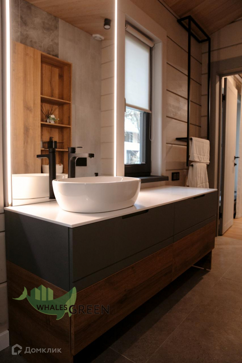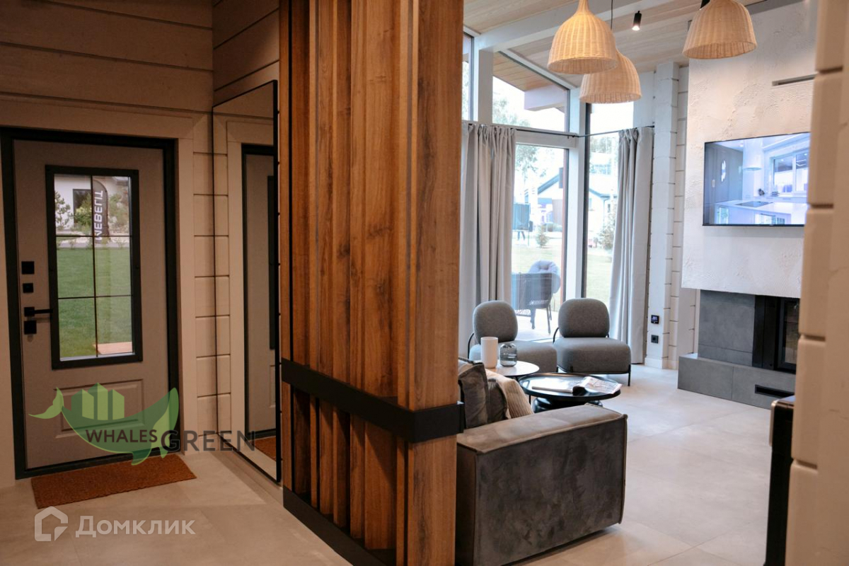 Внутреннее пространство дома созвучно архитектурной концепции выдержано в едином скандинавском стиле, изюминкой которого является двусторонний камин. Главная идея внутреннего убранства – это умеренность во всем, максимальная гармония с собой и природой.