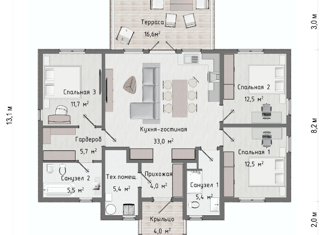 Общая площадь: 118 м2