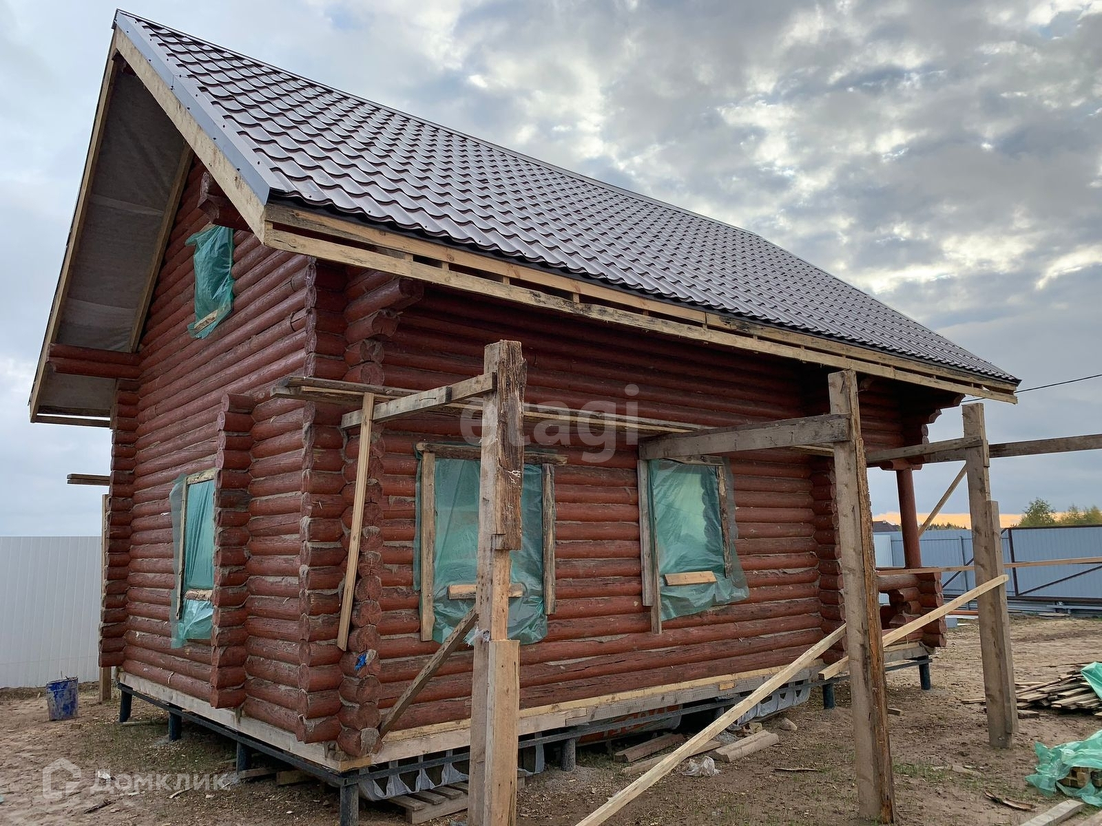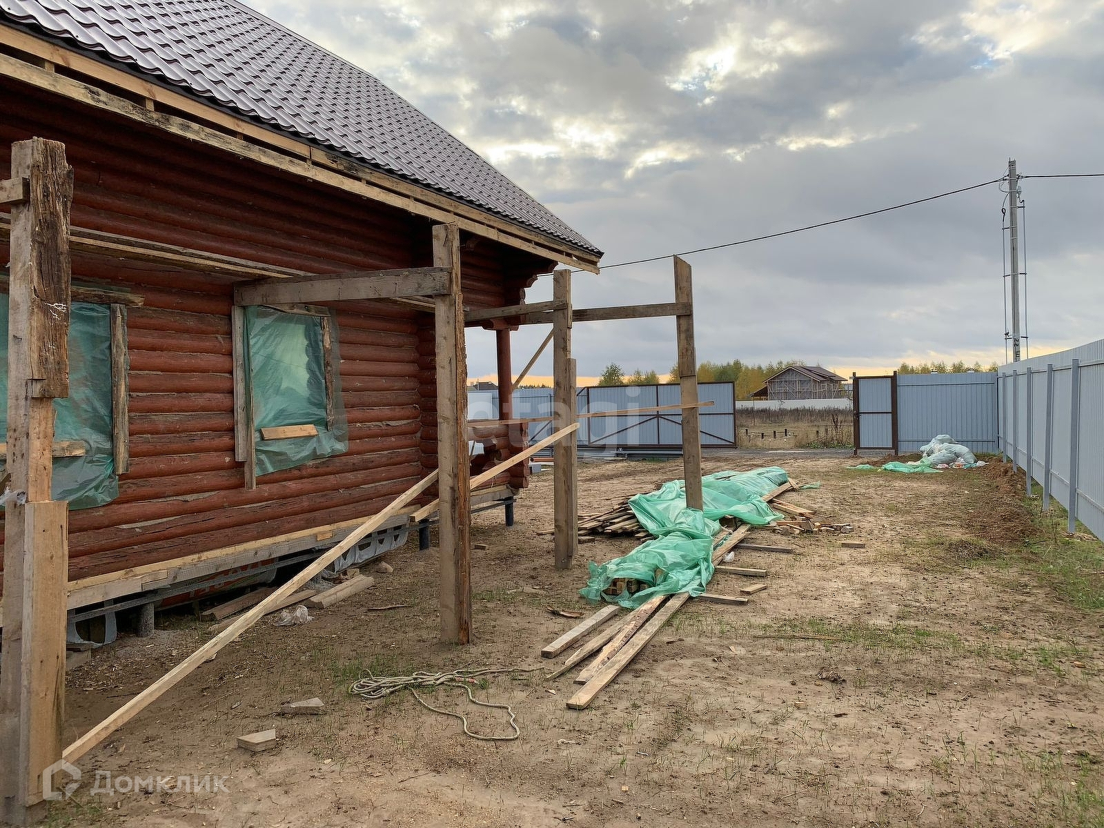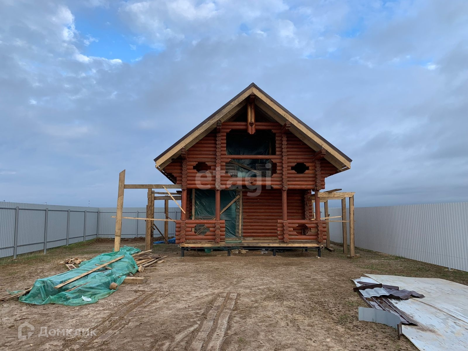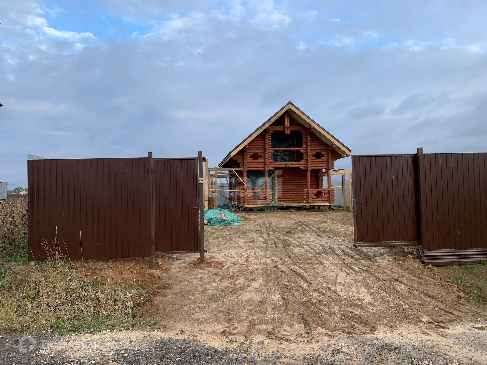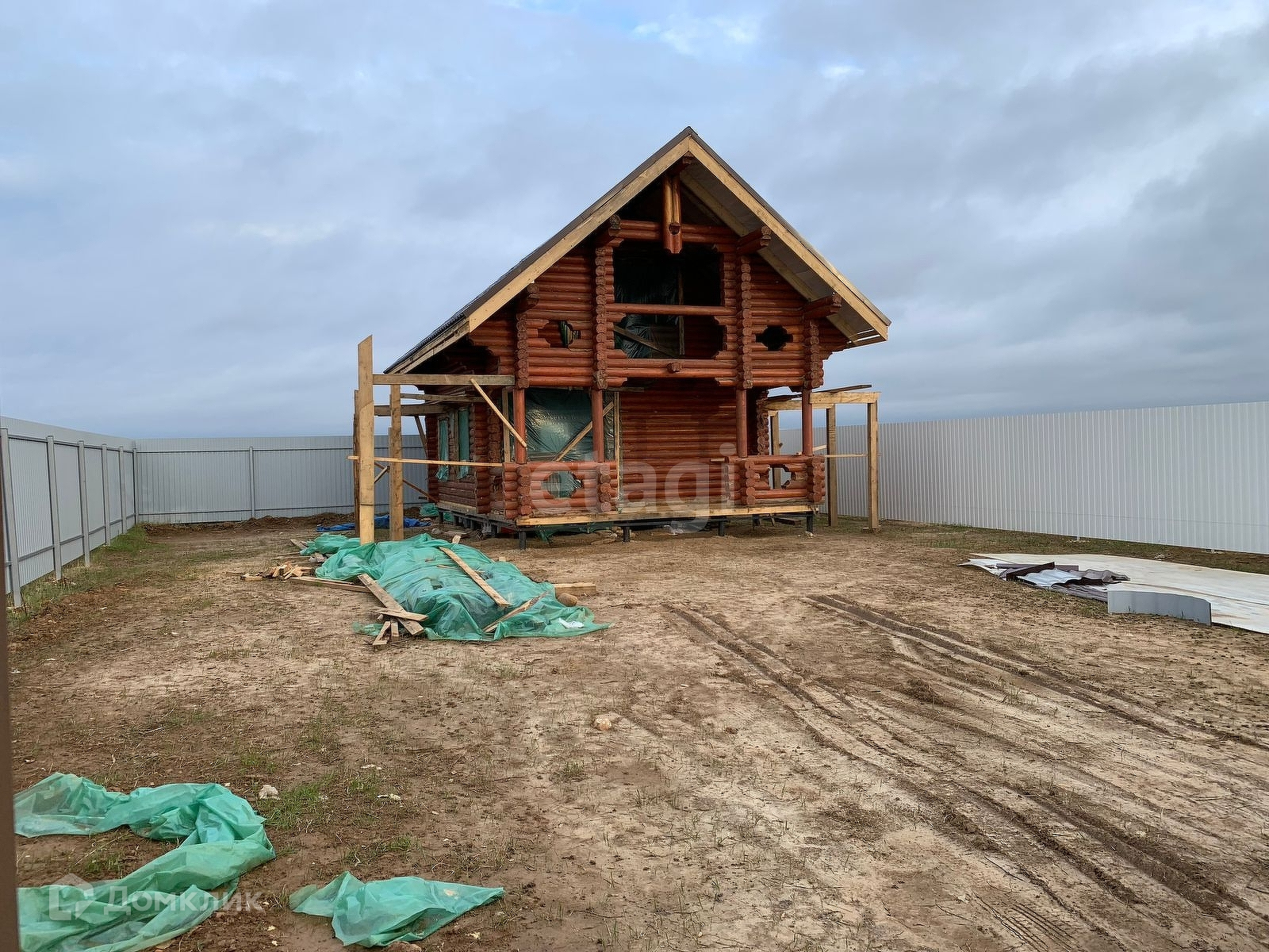 Двухэтажный дом построен из бревна. Планировка по желанию. Участок огорожен забором (профлист) , имеются въездные ворота и стоянка для машин.