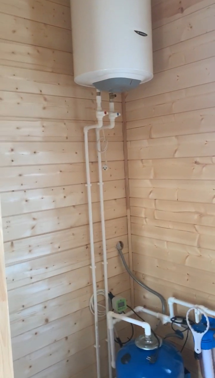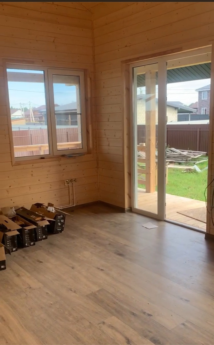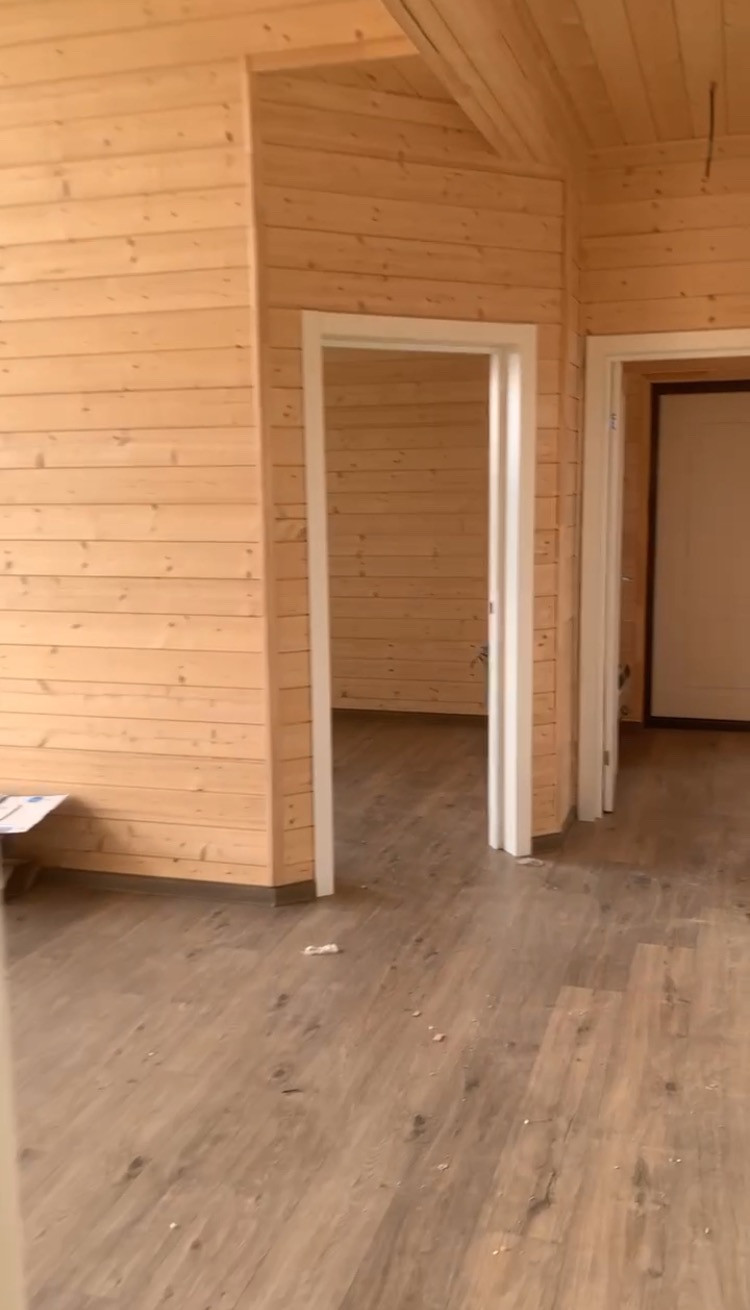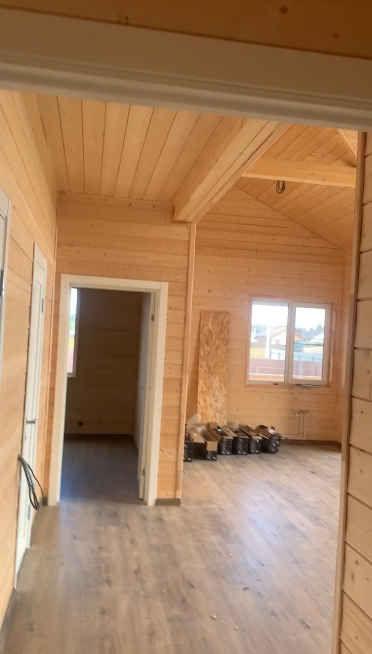 Материалы: В ходе строительства использовались только высококачественные материалы. Фундамент - жб сваи, крепеж - оцинкованная метизная продукция, антисептирование используемого пиломатериала, теплоизоляция дома - минеральная вата Knauf 200 мм, ветрозащита, пароизоляция Finka Premium plus, внешняя отделка - технониколь хауберг, внутри - стены отделаны имитацией бруса, в санузле - плитка. Полы - обрешетка в два слоя. В комнатах установлены тепловые радиаторы, есть бойлер. Ламинат 33 класс, водостойкий, окна Рехау. Профессиональная разводка электросетей.