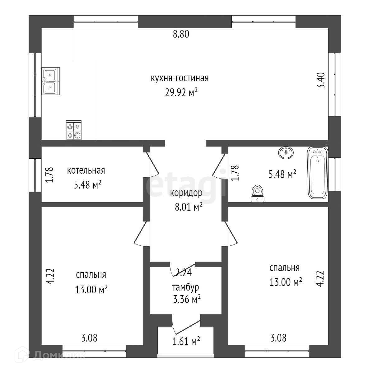 Доп. описание: отопление: электрическое, канализация: выгребная яма (бак), также имеются: котельная