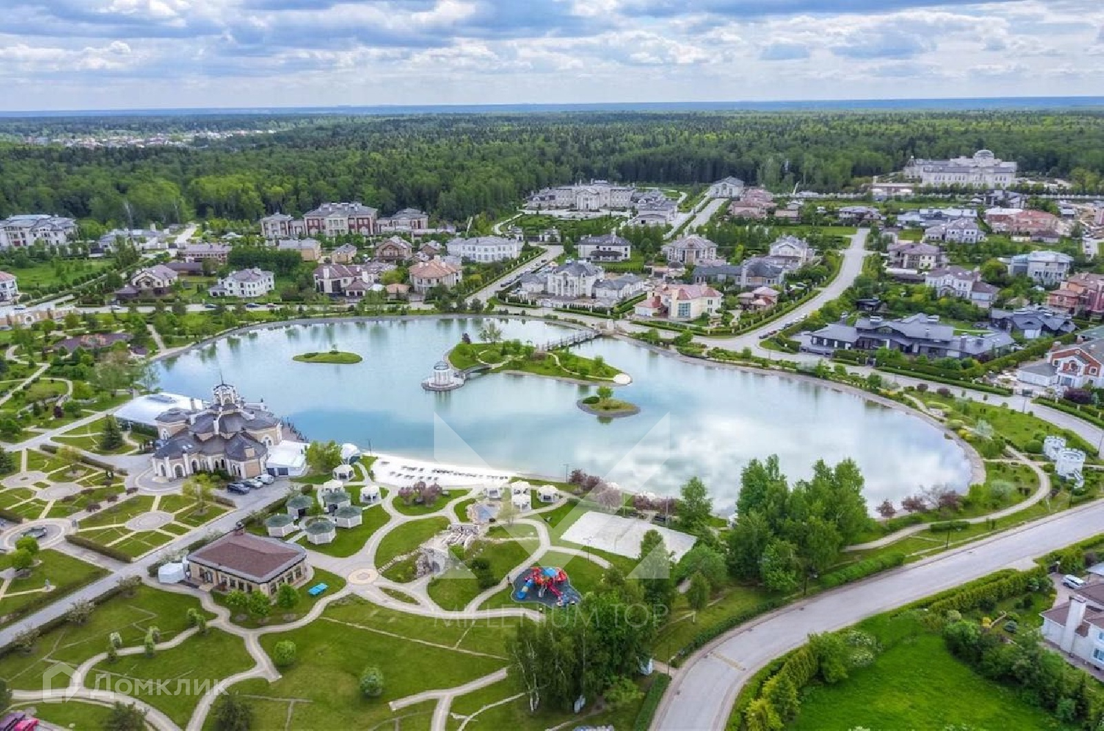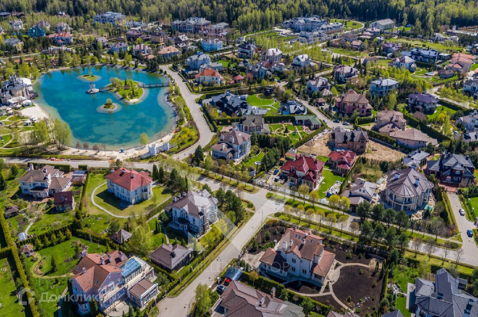 Поселок площадью 127 Га расположен в окружении леса. Поселок выполнен в едином стиле - в классической Европейской архитектуре.