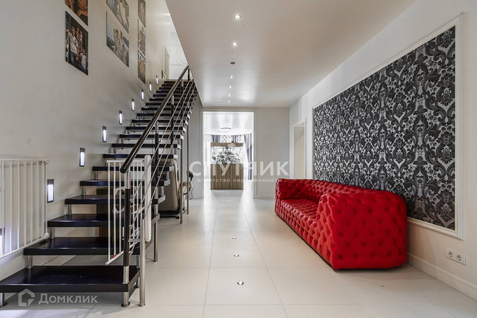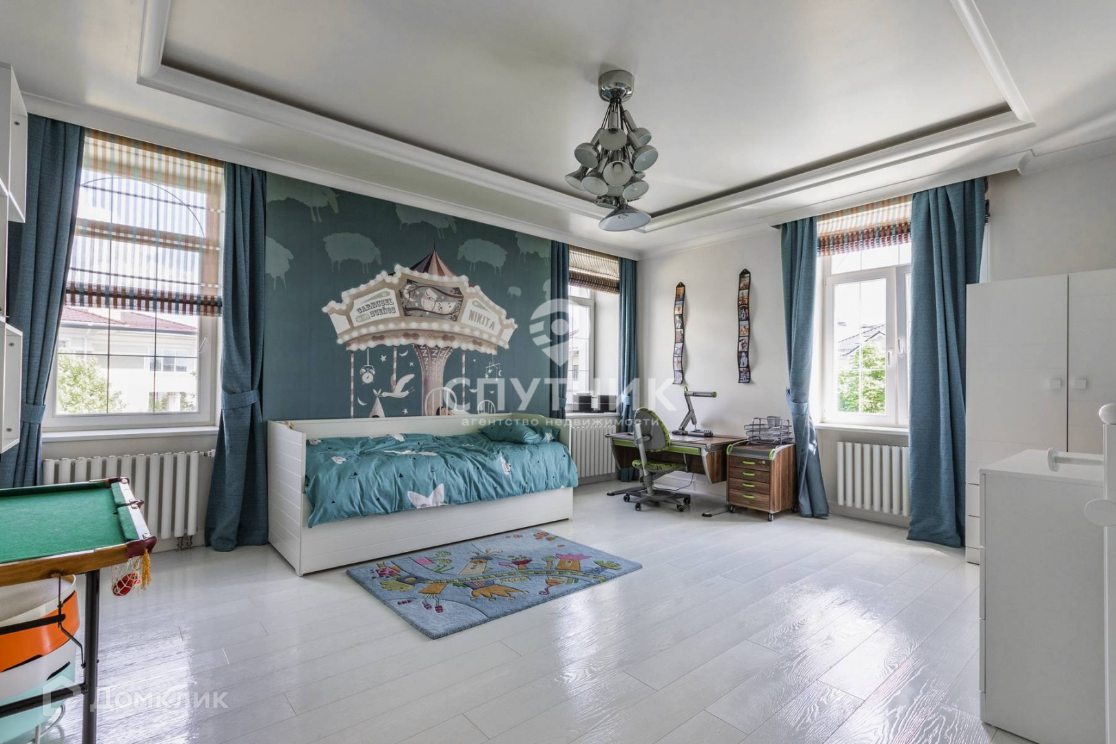 Арт. 24174677 Загородный дом в современном стиле площадью 512,1 кв.м под ключ с мебелью, построенный на участке 20 соток в премиальном посёлке "Monteville (Монтевиль)». На первом этаже находится прихожая с гардеробной комнатой, кабинет, спальня, гостиная, кухня - столовая, отдельная постирочная комната, санузел. Второй этаж занимают 3 спальни, 1 с индивидуальной гардеробной и большой ванной комнатой с окнами, также отдельная детская игровая комната, ванна, кладовое помещение. На третьем этаже располагается бильярдный зал, кинозал, инфракрасная сауна, санузел, кухня и 2 гостевые комнаты. Предусмотрен встроенный гараж на два машиноместа с мансардным помещением и большая открытая парковка. На участке проведены ландшафтные работы, установлено уличное освещение, высажены лесные и плодовые деревья. Есть беседка и спортивная площадка, предусмотрено место для бассейна со специальным покрытием. От шоссе к поселку ведёт частная дорога, окруженная живописным лесом.