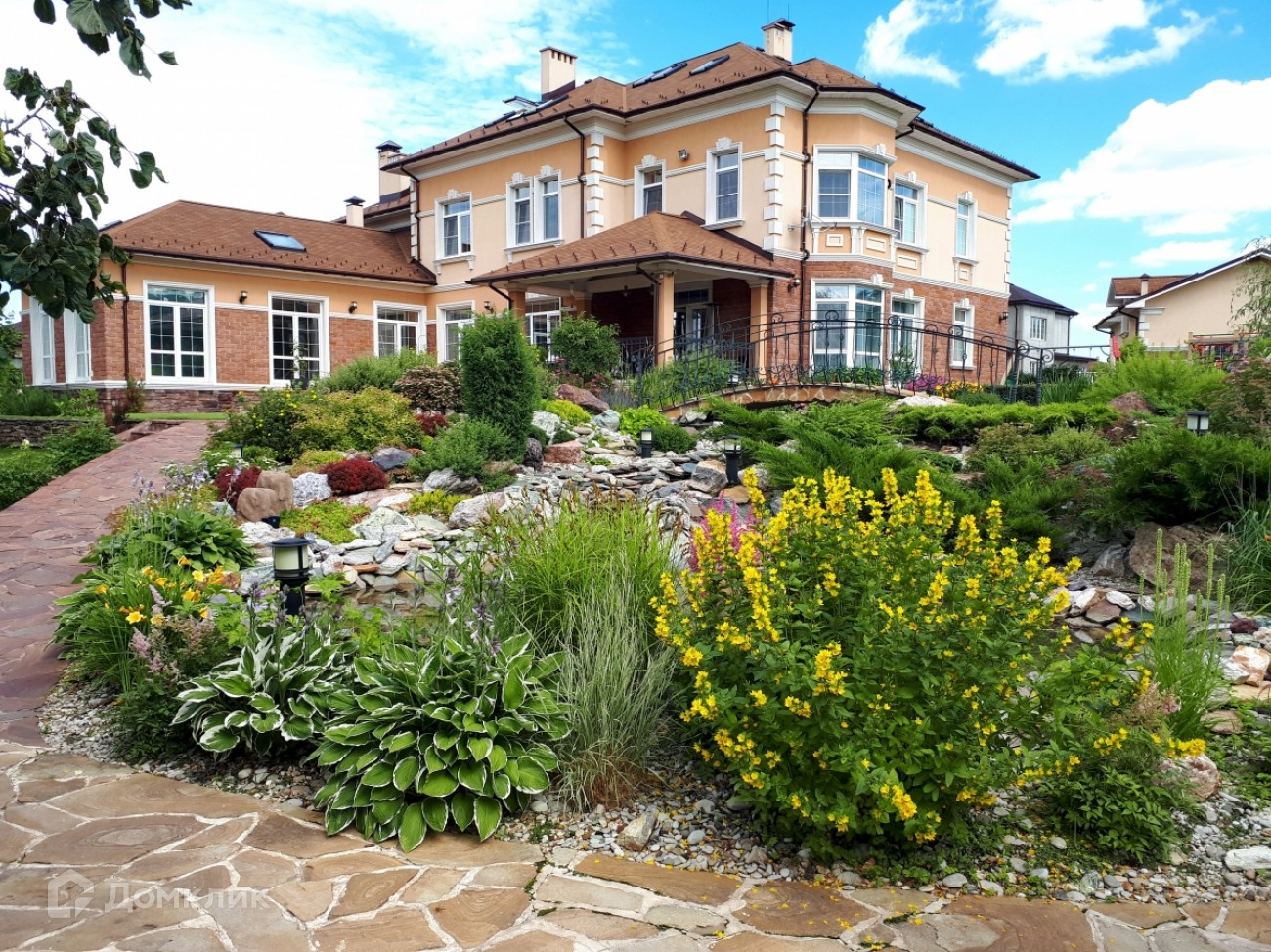 Лот №55857. Дом под ключ 750 кв.м. на участке 32.00 соток. Количество спален: 7. Коттеджный посёлок «Гринвич», Пятницкое шоссе, 28 км от МКАД. Просторный участок с шикарным ландшафтный дизайном: красивейшая альпийская горка, 2 пруда с водопадом и ручьем между ними, прямой выход в лес.
