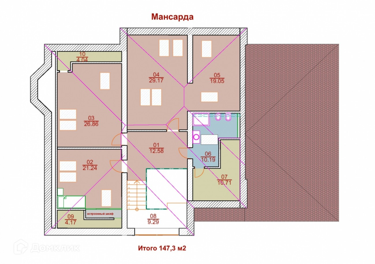 Мансарда: спальня, кабинет, комната свободного назначения, тренажерный зал, с/у.