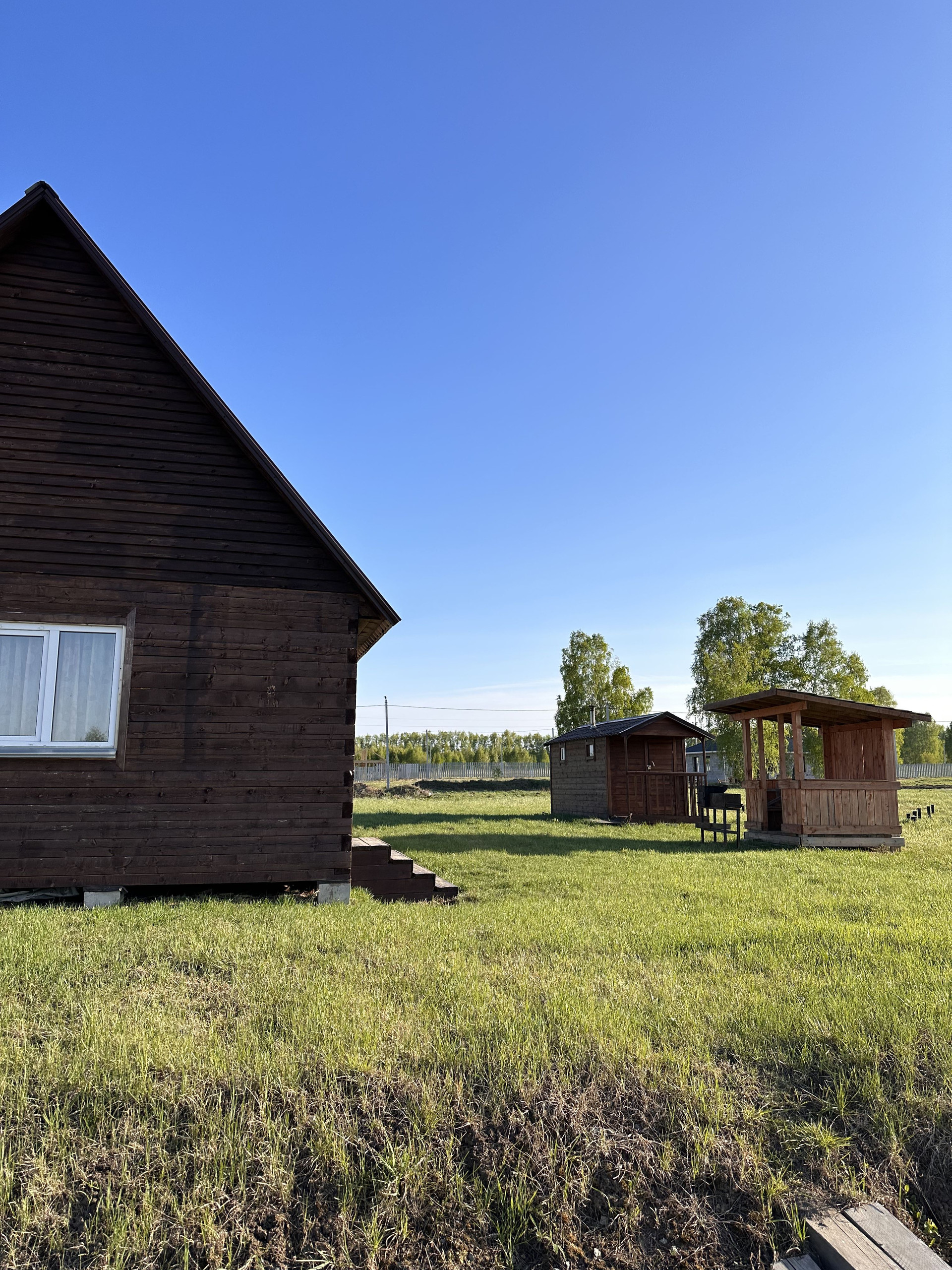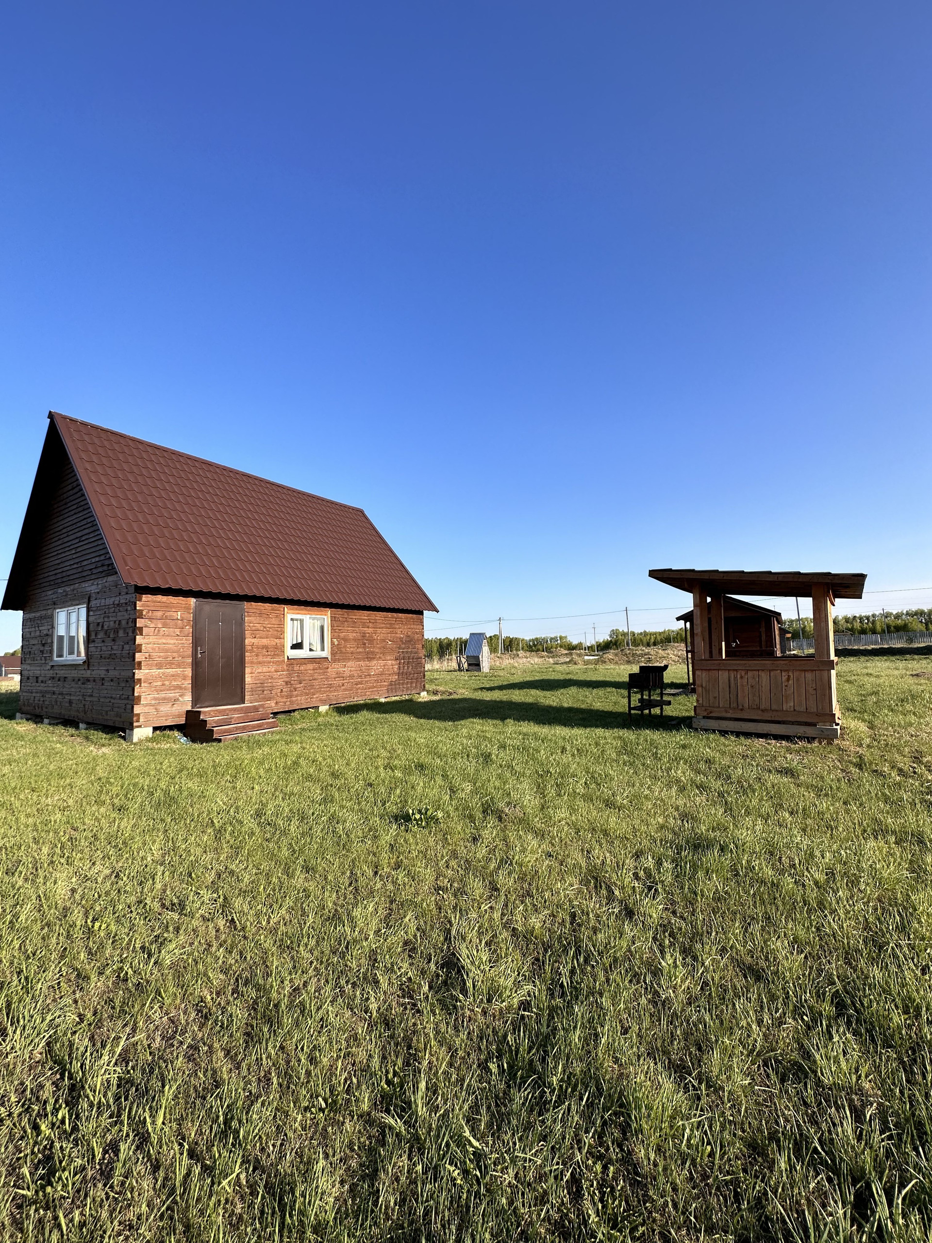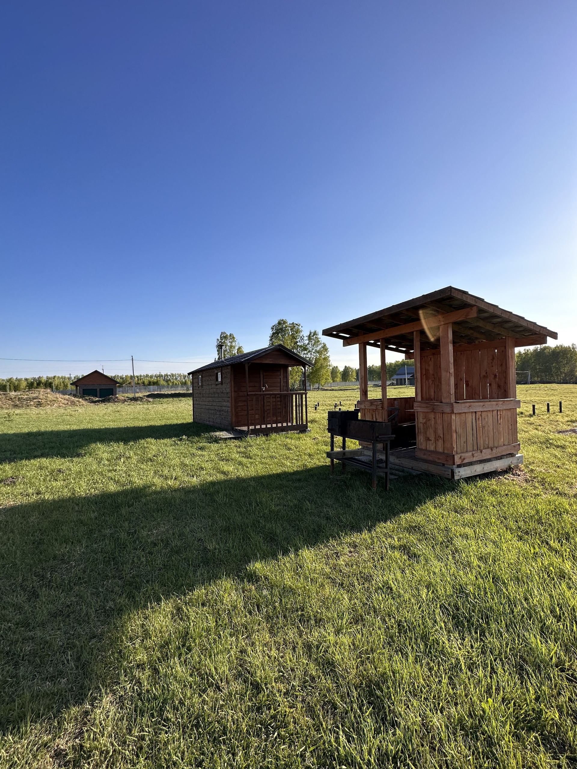 на территории стоит новая баня, беседка