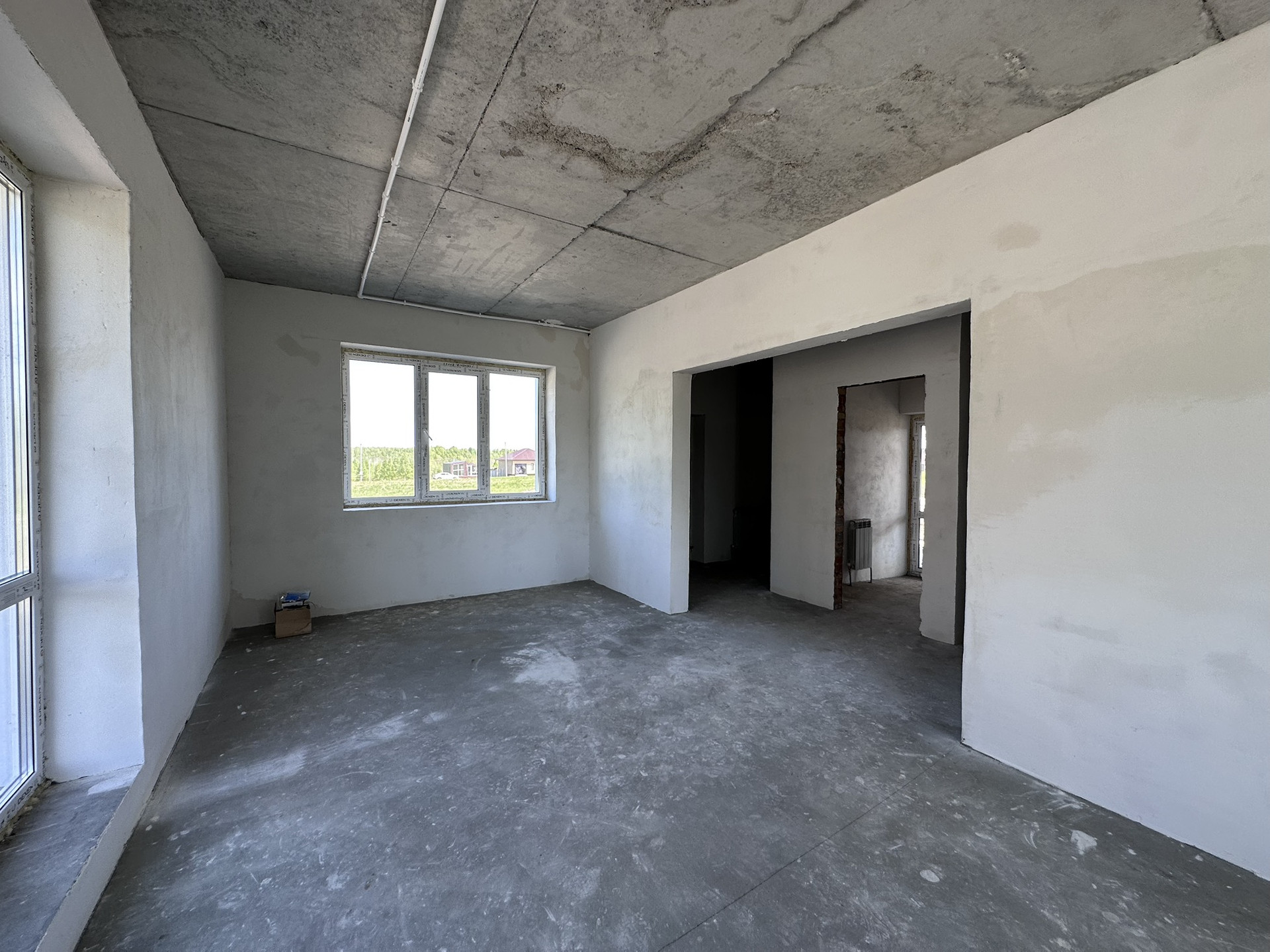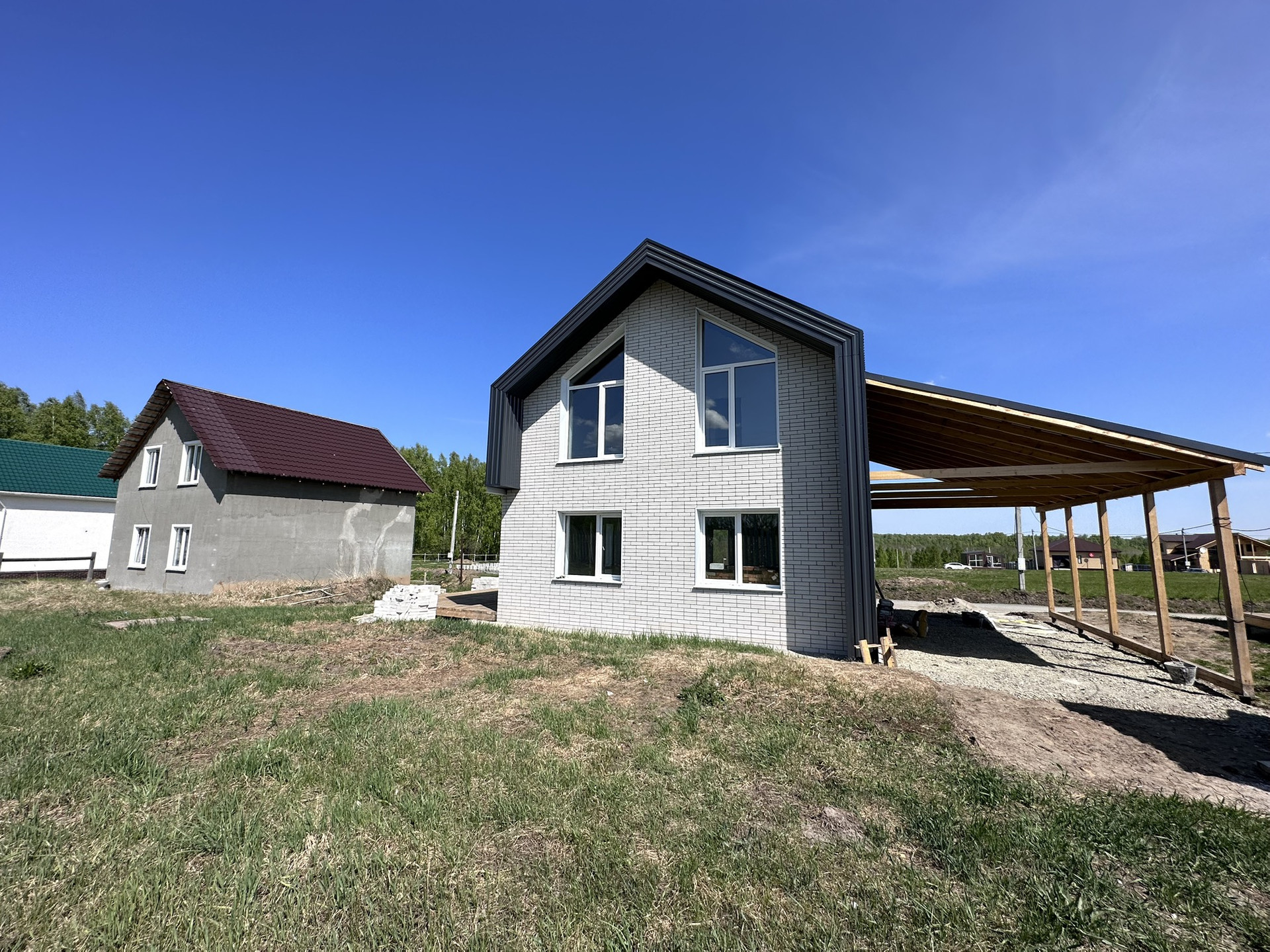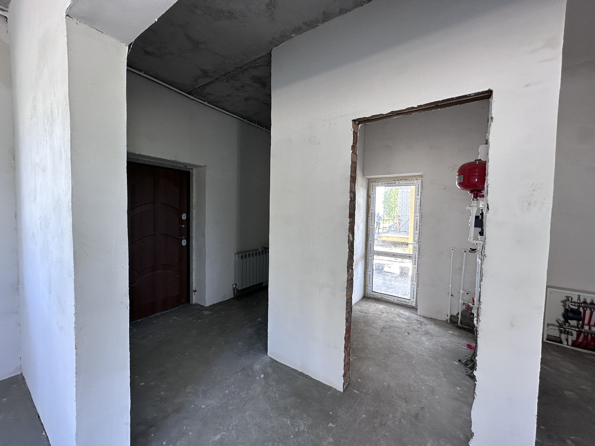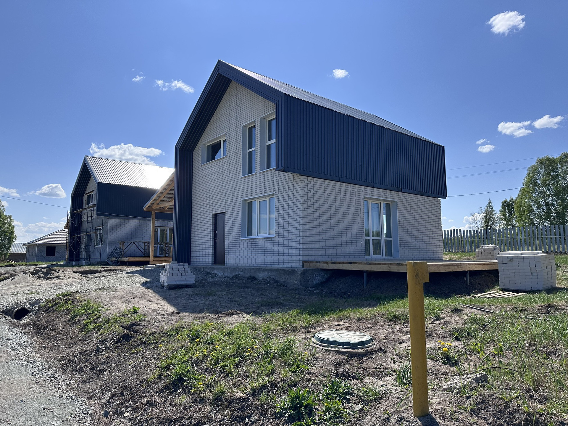 -Подведены все коммуникаций в дом- электричество, вода- центральная скважина, канализация- септик, отопление- электрическое, сделана отмостка, в поселке подведён газ- совсем скоро появится возможность подключения;