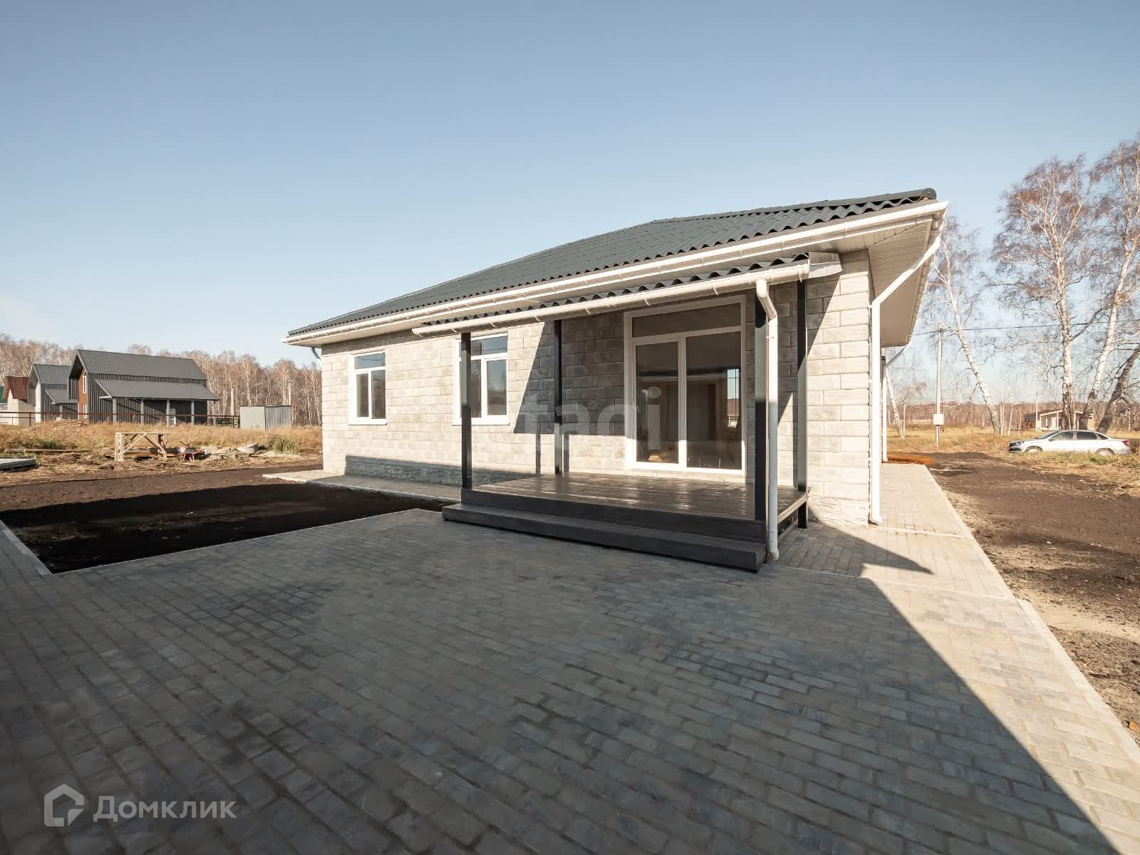 Отмостка и внутренний двор выложены брусчаткой.