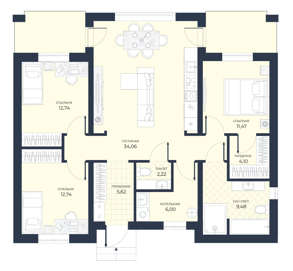 Количество комнат 4