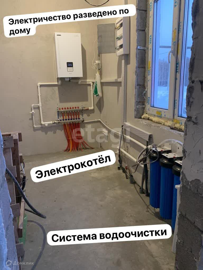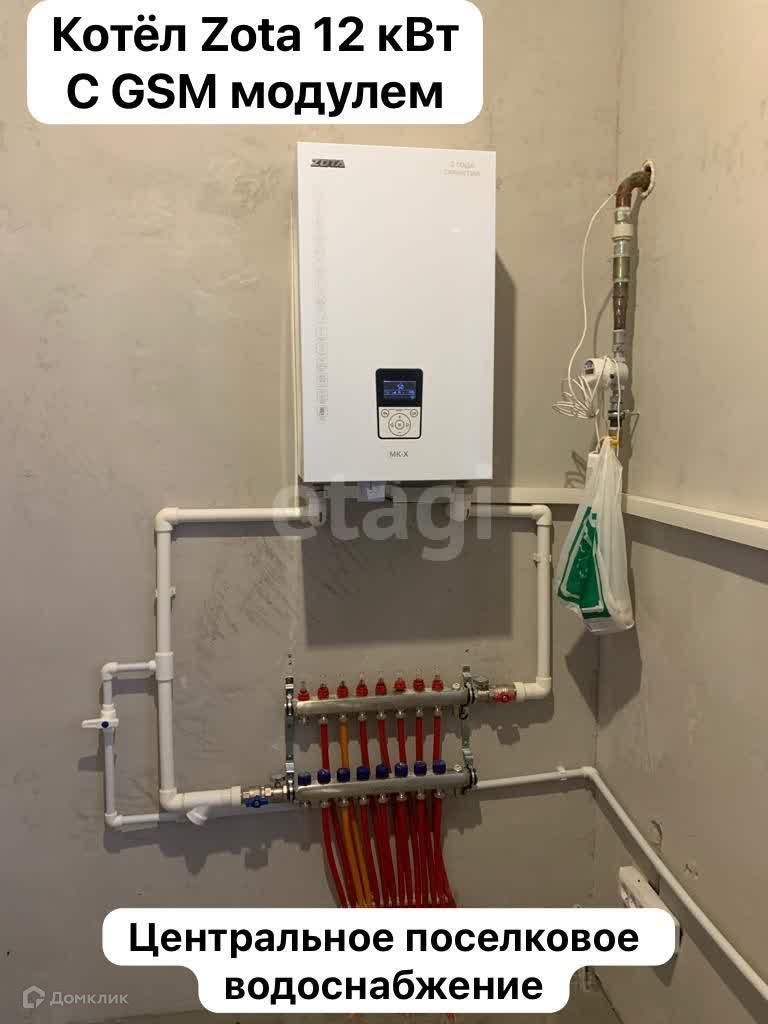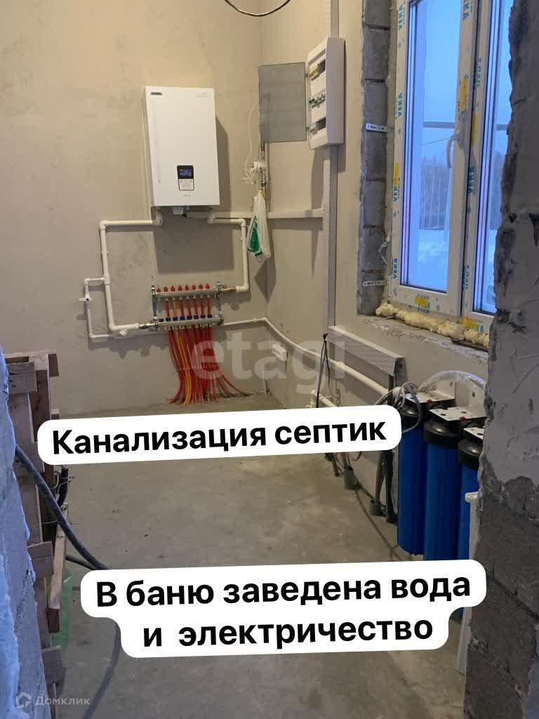 Газ оплачен, заведен в дом, к газовому котлу, подключен бесперебойный источник питания, на случай отключения электричества или перепадов напряжения, отопление теплый пол, электричество разведено по дому, розетки, выключатели, канализация септик, водоснабжение - центральное поселковое, сделан анализ воды, стоит система водоочистки, сделана разводка воды в доме ( подведено к санузлам и кухне , горячая и холодная вода. Материал стен -теплостен, материал кровли - волноколор ( не дает конденсат, бесшумный, не горит)