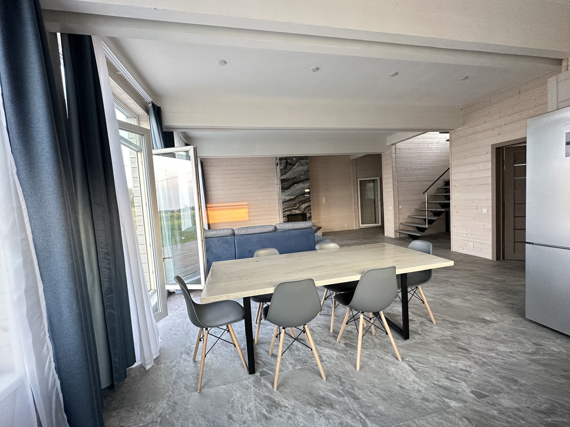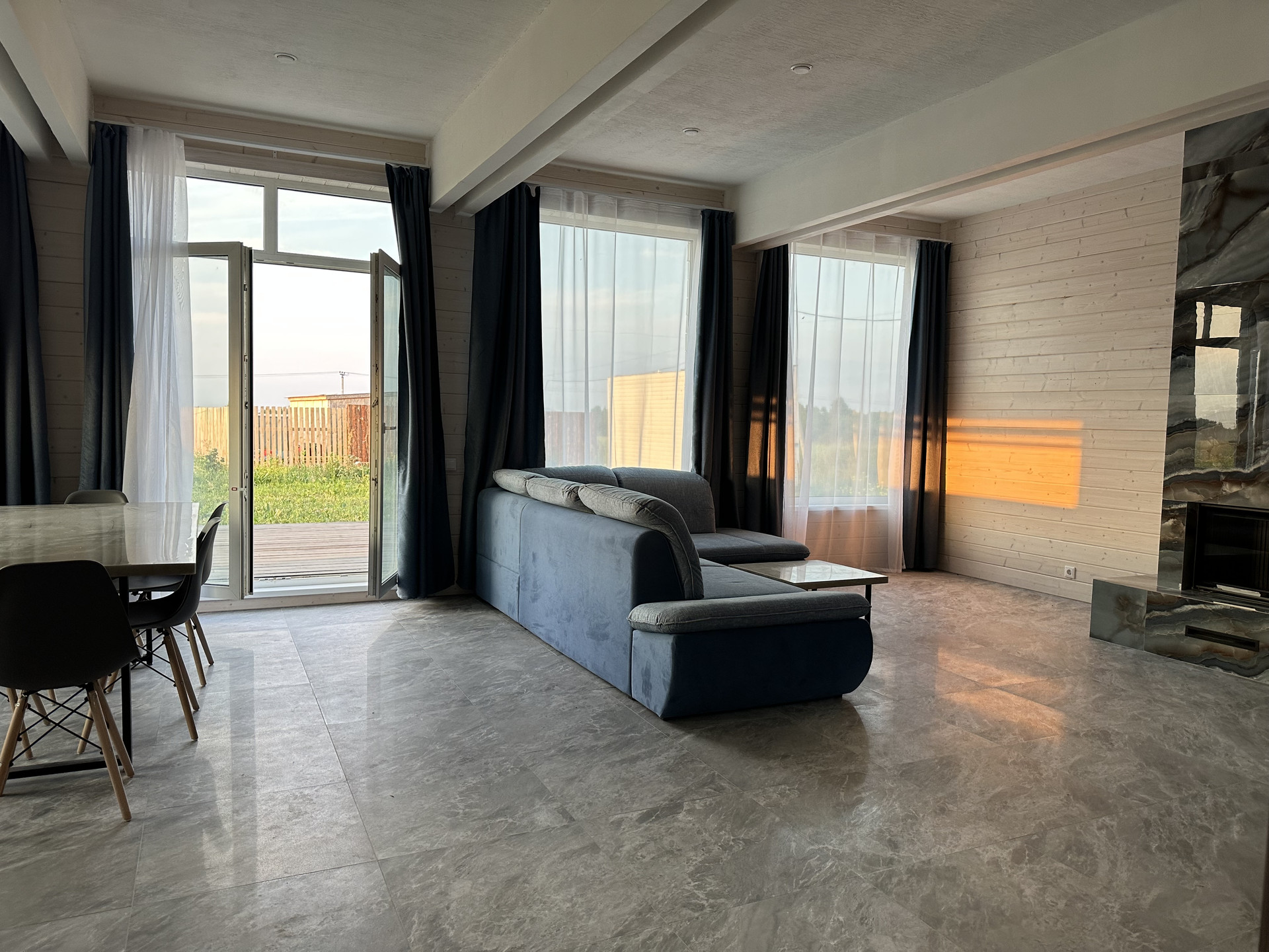 Войдя внутрь, вы ощутите себя в мире современного комфорта. Просторная кухня-гостиная с потрясающим камином Astov и полной комплектацией мебелью ждет вас на первом этаже. Из гостиной, где созданы уютные уголки отдыха с комфортным диваном, вы сможете выйти на великолепную террасу площадью 30 квадратных метров, .