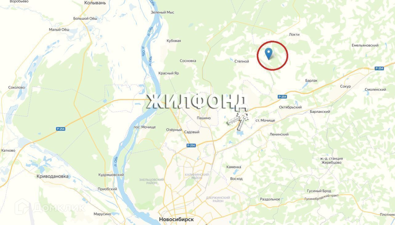 Недалеко от станции Мочище и посёлка Октябрьский.