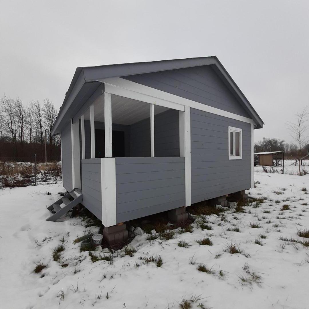 Продам новый каркасно-щитовой дом 6х6 на участке 5 соток в КП Иннолово. Дом обшит блокхаусом и покрашен фасадной финской краской. Крыша металлическая, кровельная краска. Надежная входная дверь. Внутри одна комната-спальня обшита вагонкой(2 стенки и потолок) и гипроком. Утепление 100 мм.Н потолка=2.4. Разведена электропроводка. Получилось очень красиво!! участок правильной прямоугольной формы 30 х 17 метров, сухой и ровный, на возвышенности. Участок в собственности.