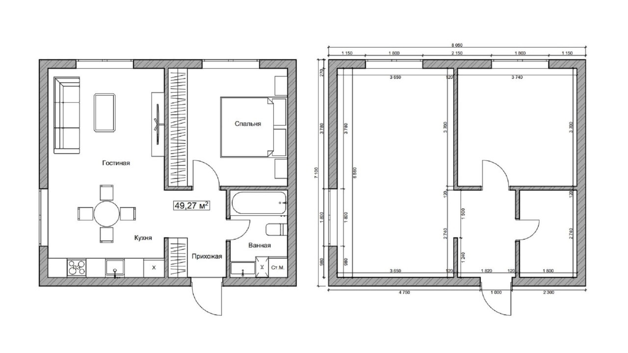Общая площадь 56 м2