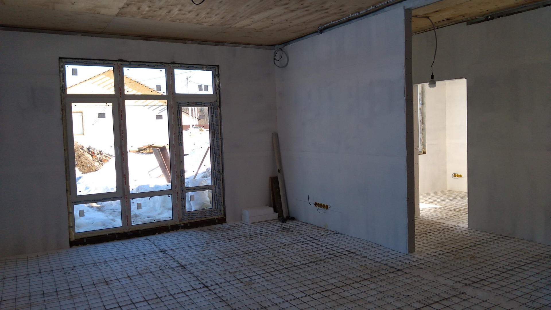 Дом строится на бенноленточном фундаменте, установлен стальной силовой каркас (гораздо надёжнее и долговечнее деревянного), стены обшиты оцинкованными теплопанелями РIR, толщиной 100мм, что обеспечивает рекордную теплопроводность с другими современными материалами. Панели обеспечивают красивый внешний вид дома в течении многих лет, и не требуют дополнительного утепления или использования дополнительных фасадных материалов. Установлены качественные двухкамерные энергосберегающие стеклопакеты. Дом отапливается современными водяными тёплыми полами, установлено качественное водонагревательные оборудование. В доме выполнена предчистовая отделка, выровнены стены, проведена электрика, водоснабжение и канализация.
